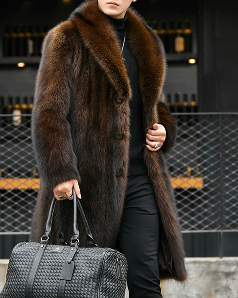 Big & Tall Men's Casual Business Mink Faux Fur Long Coat M-5XL