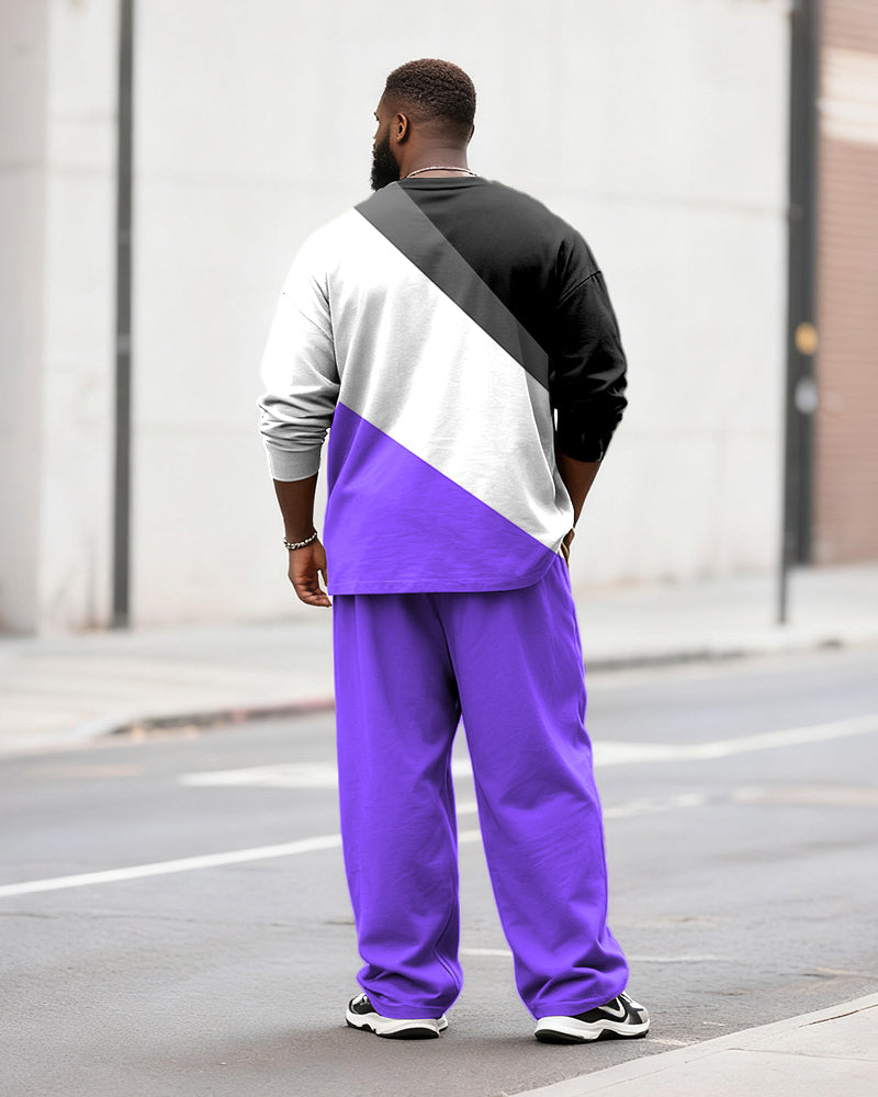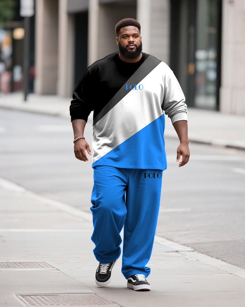Big & Tall Men's Casual Colorblock Geometric Alphabet Print Long Sleeve T-Shirt Pants Set