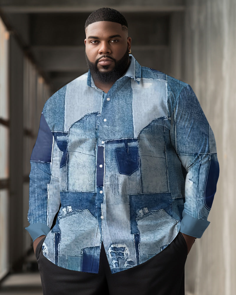 Redefine denim style with this big & tall men's long-sleeve shirt, where innovative ripped denim patchwork creates a dimensional streetwear edge. The relaxed-yet-structured cut and premium cotton blend offer comfort, while the artistic design is easy to pair with - layer it over hoodies or wear solo for an urban attitude.