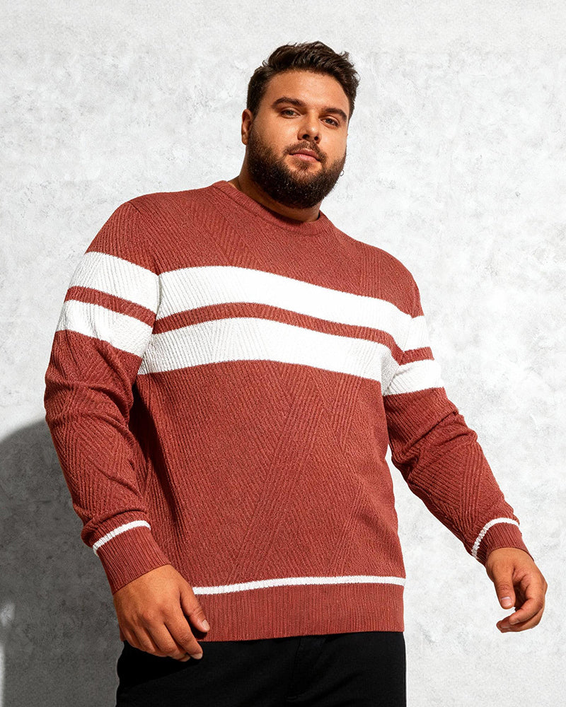 Big & Tall Men's Casual Striped Pullover Colorblock Crewneck Sweater S-2XL