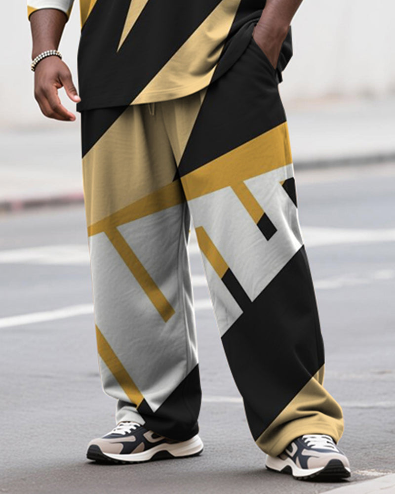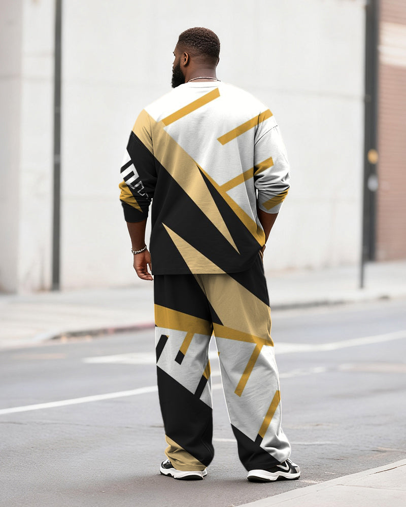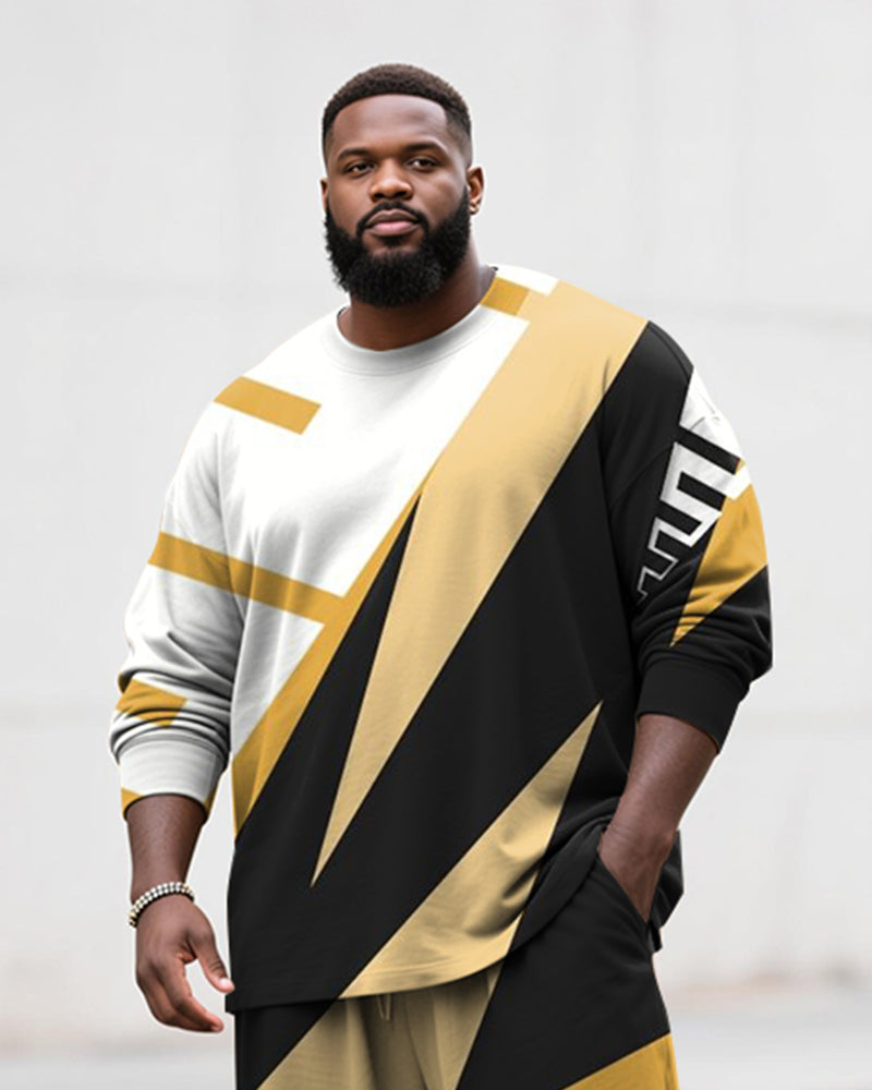 Big & Tall Men's Casual Yellow And Black Geometric Stripe Printed Long Sleeve T-Shirt Pants Set