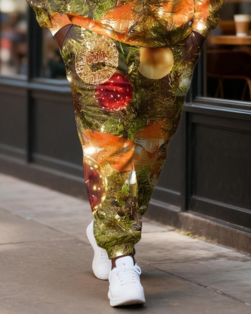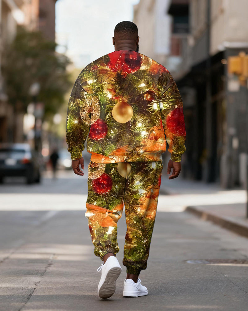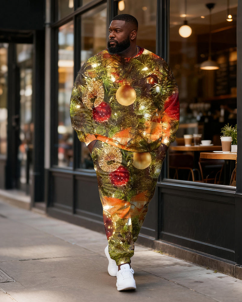 Big & Tall Men's Christmas Branch Decorative Ball Printed Round Neck Sweat Set