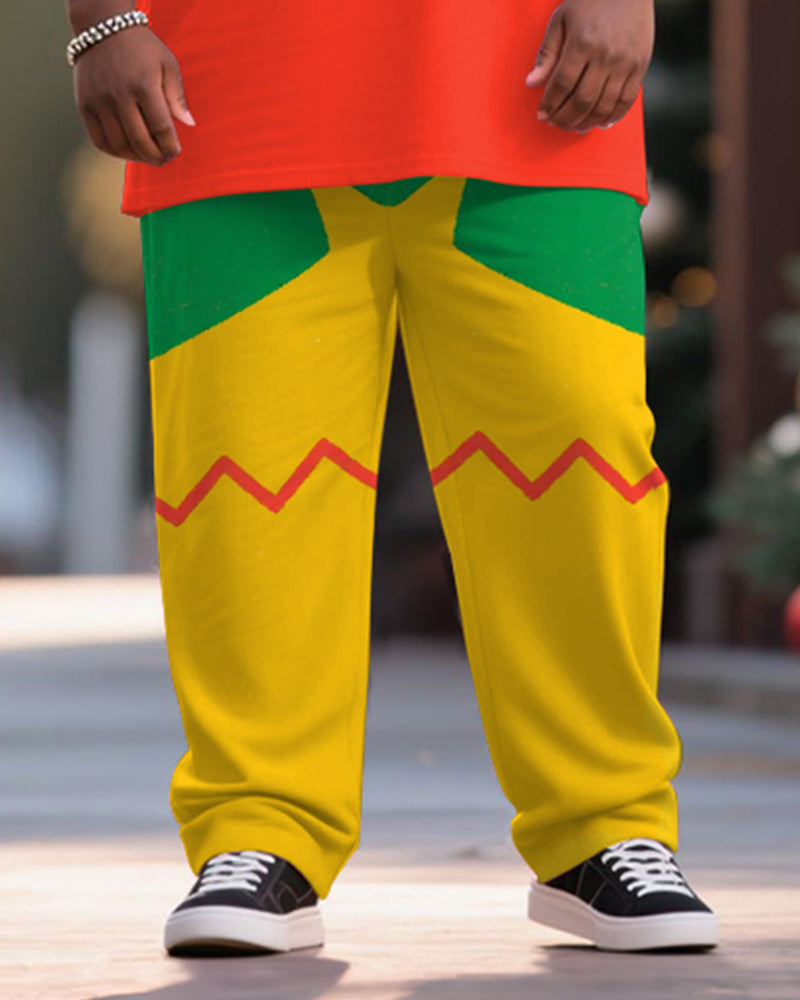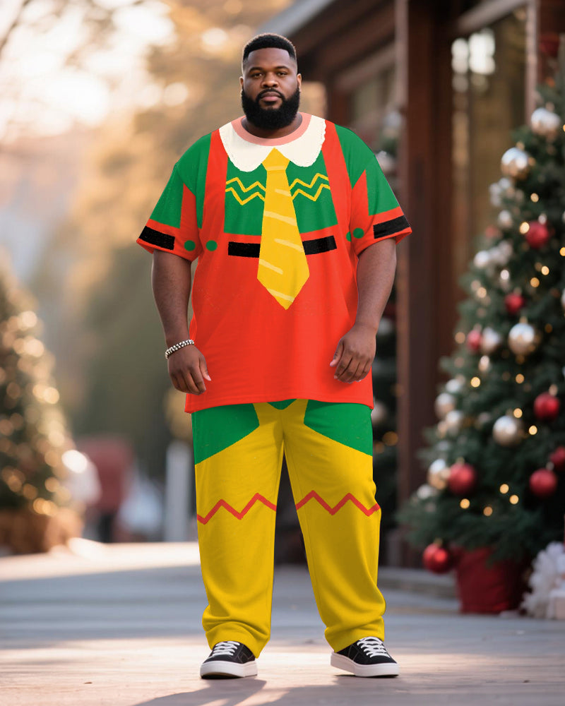 Big & Tall Men's Christmas Elf Cosplay Printed T-Shirt Trousers Suit