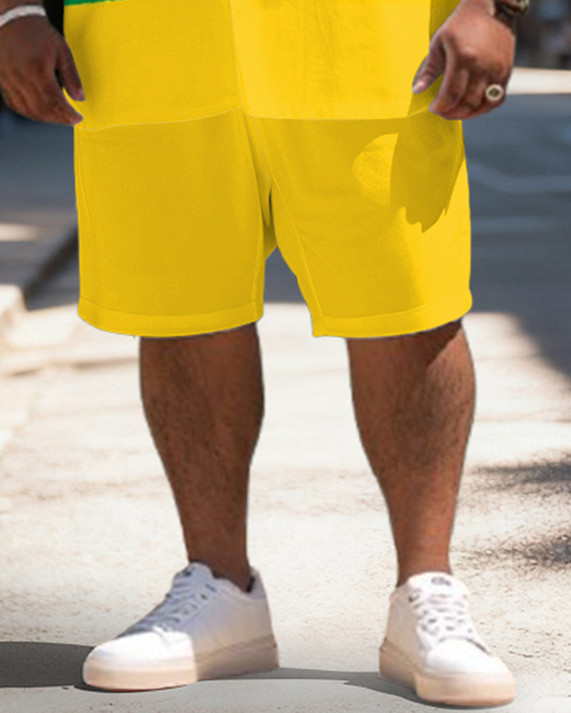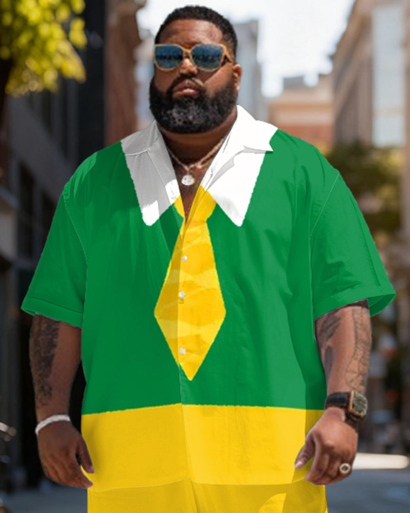 Big & Tall Men's Christmas Elf Tie Cosplay Printed Short Sleeve Shirt Shorts Set