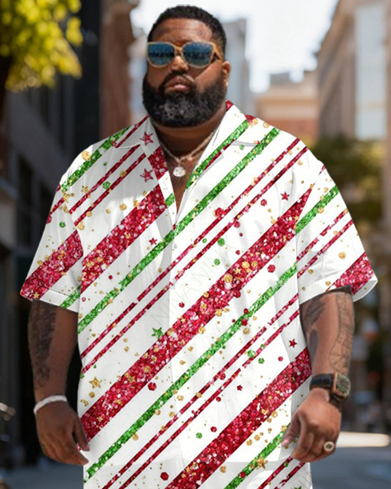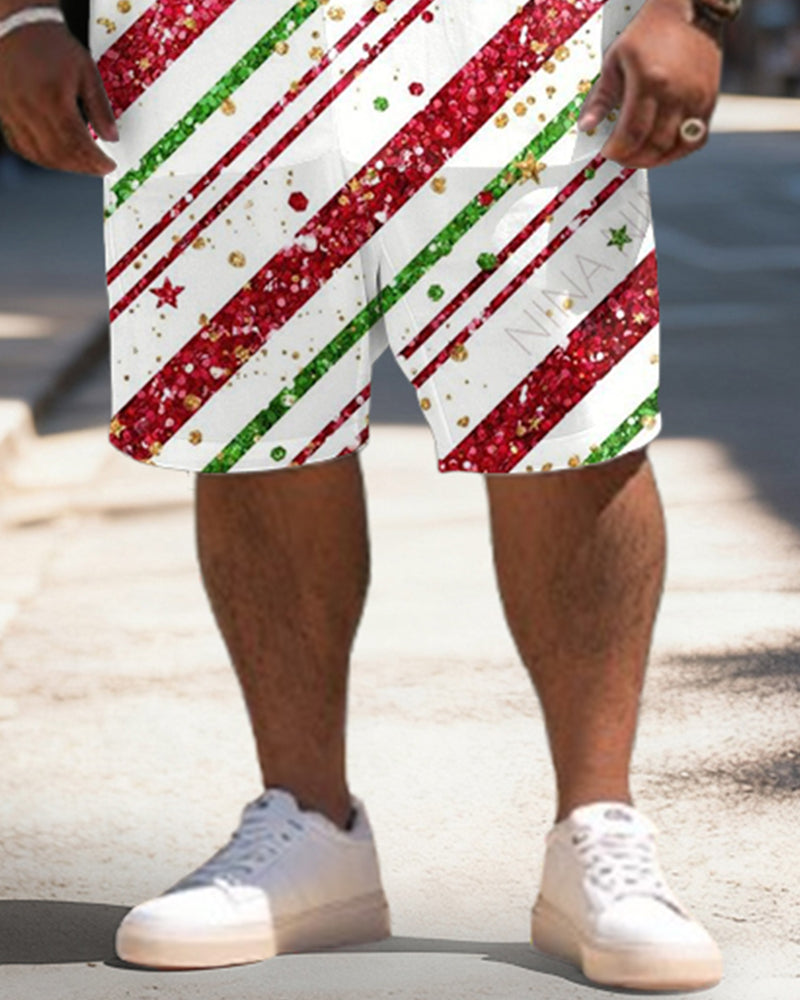 Big & Tall Men's Christmas Flash Stripe Graffiti Print Short Sleeve Shirt Shorts Set