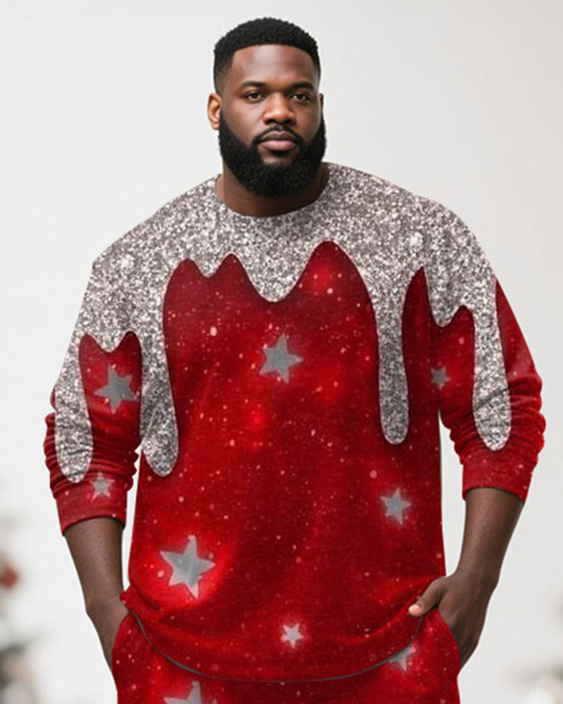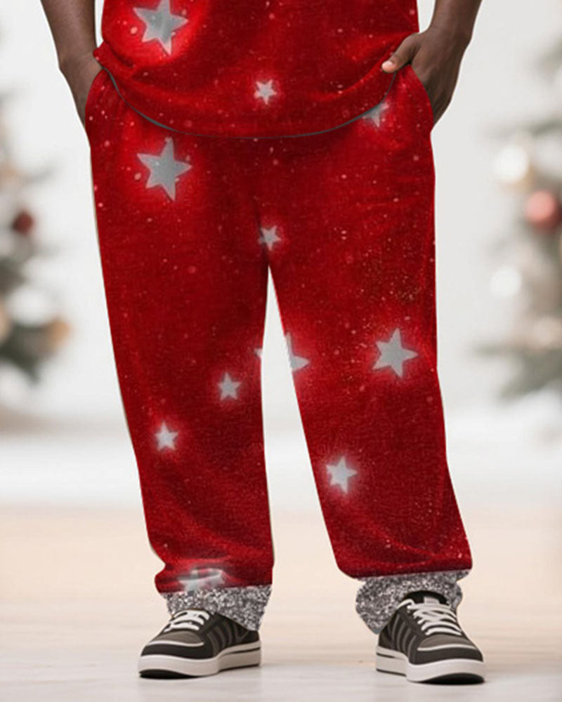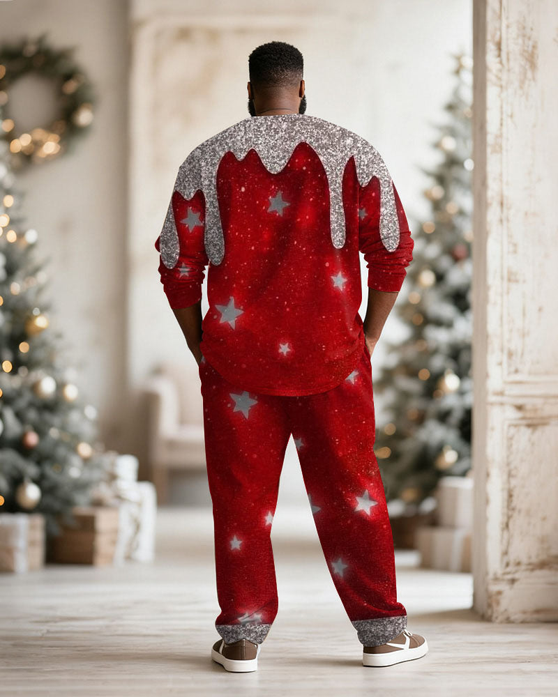 Big & Tall Men's Christmas Flowing Snowflake Print Long Sleeve T-Shirt Pants Set