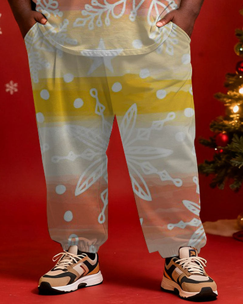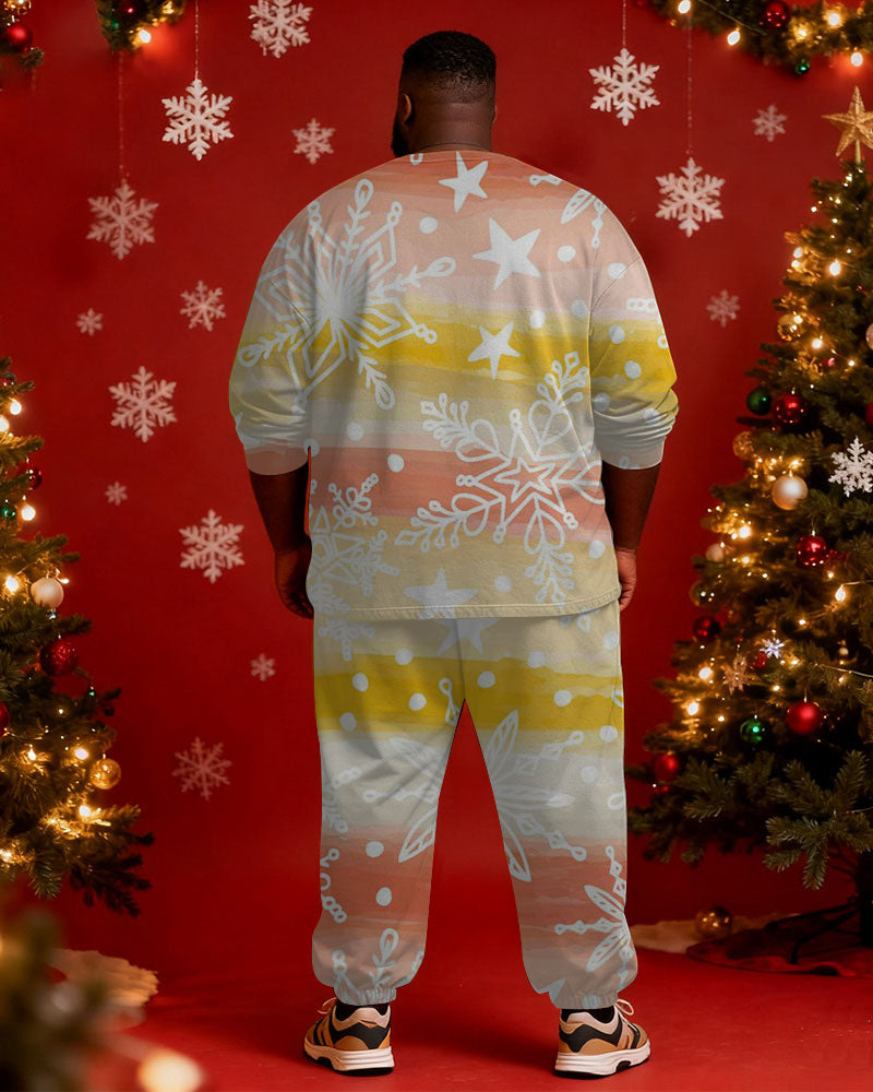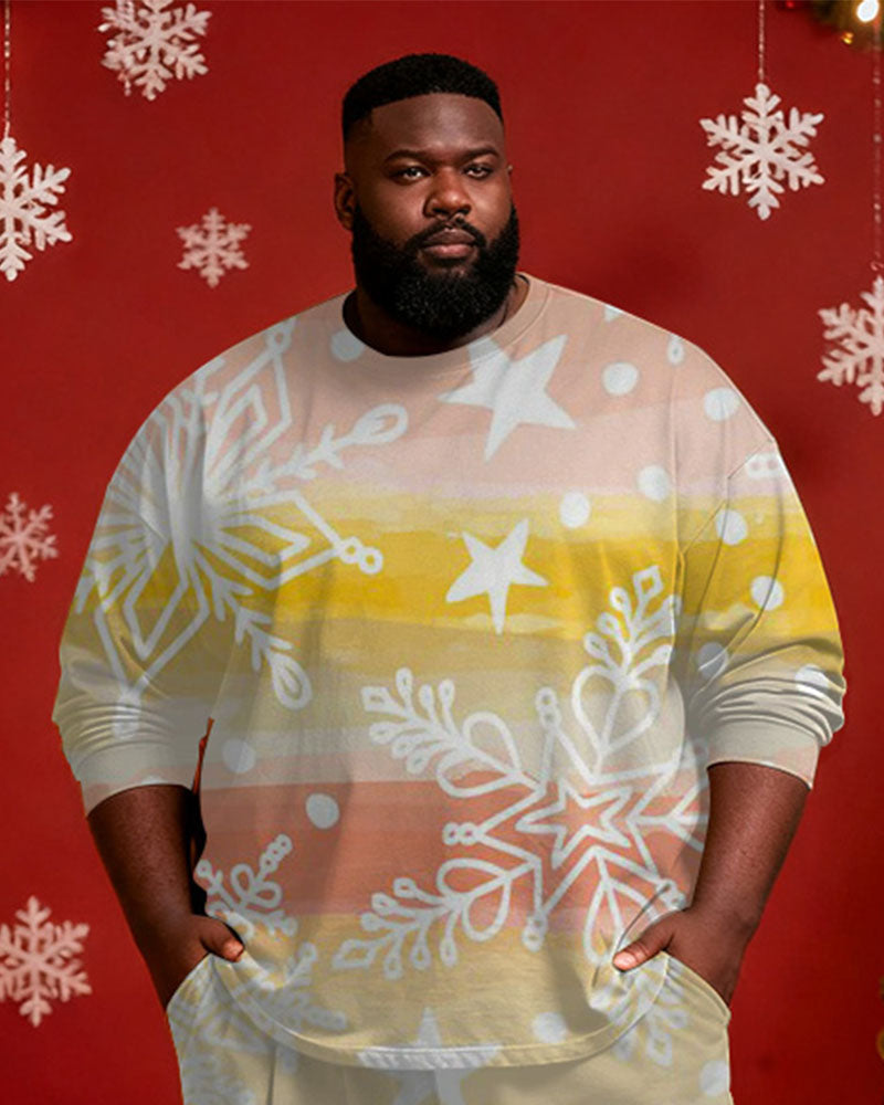 Big & Tall Men's Christmas Gradient Snowflake Print Long Sleeve T-shirt Pants Set