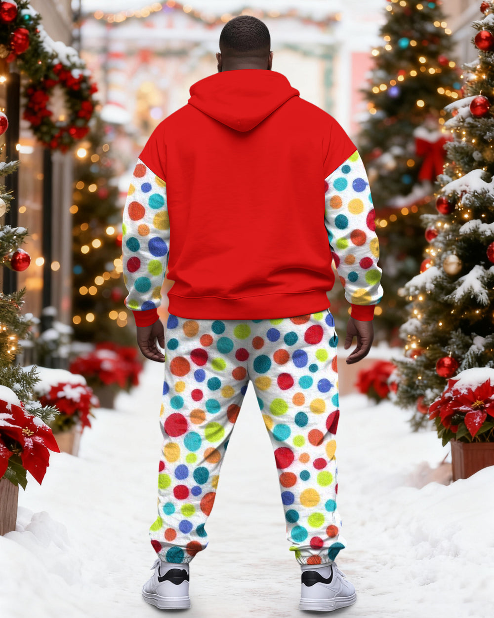 Big & Tall Men's Christmas Polka Dot Clown Santa Claus Hoodie Set