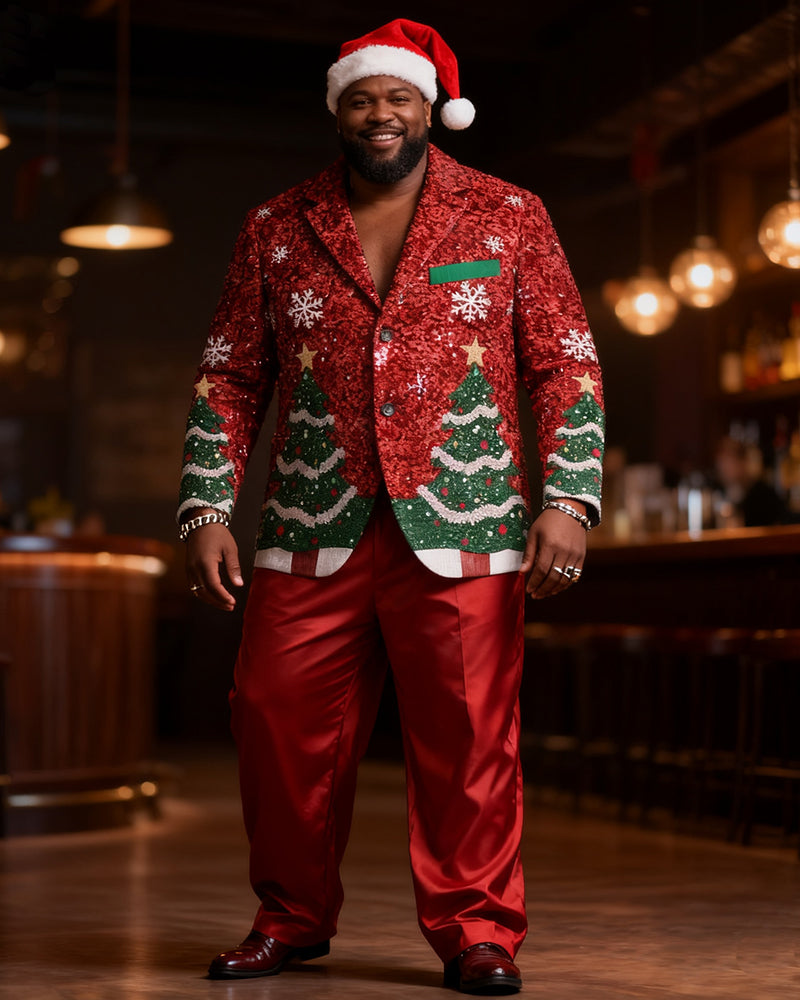 Big & Tall Men's Christmas Sequins Christmas Tree Print Suit