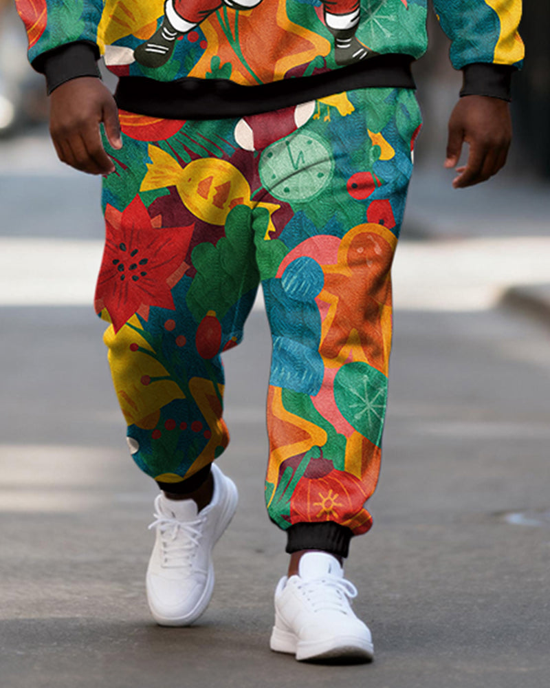 Big & Tall Men's Christmas Tree Decorative Print Crewneck Sweat Set