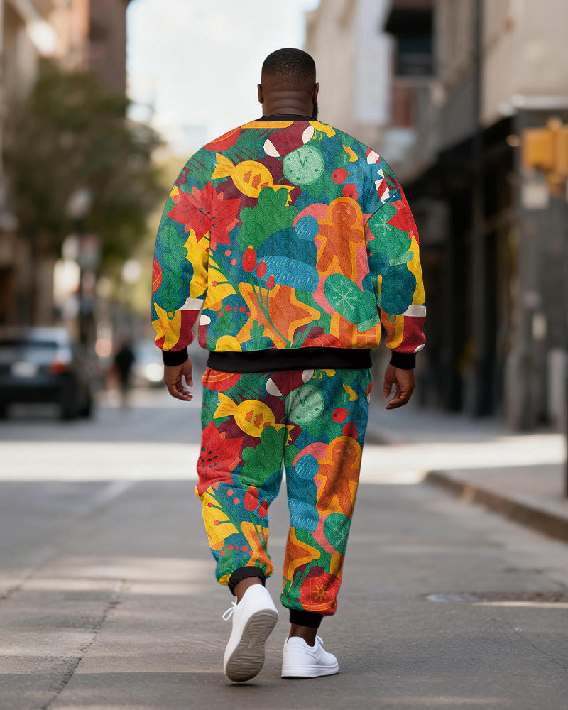Big & Tall Men's Color Rock Santa Playing Guitar Printed Round Neck Sweater Set