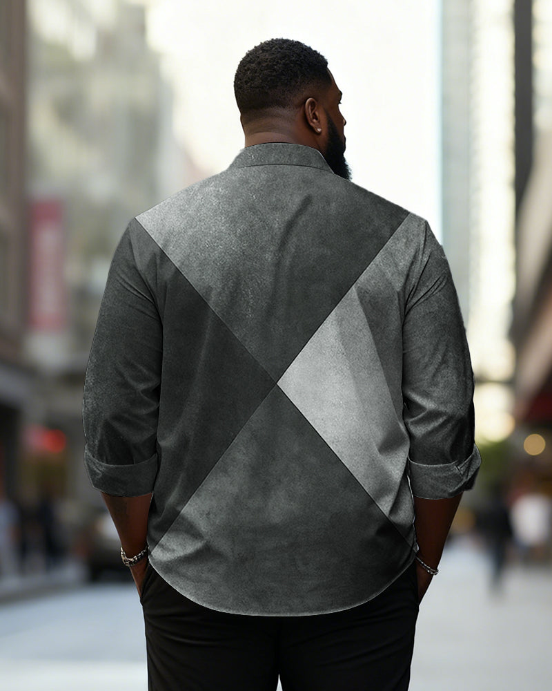 Big & Tall Men's Colorblock Grey Geometric Print Long Sleeve Shirt