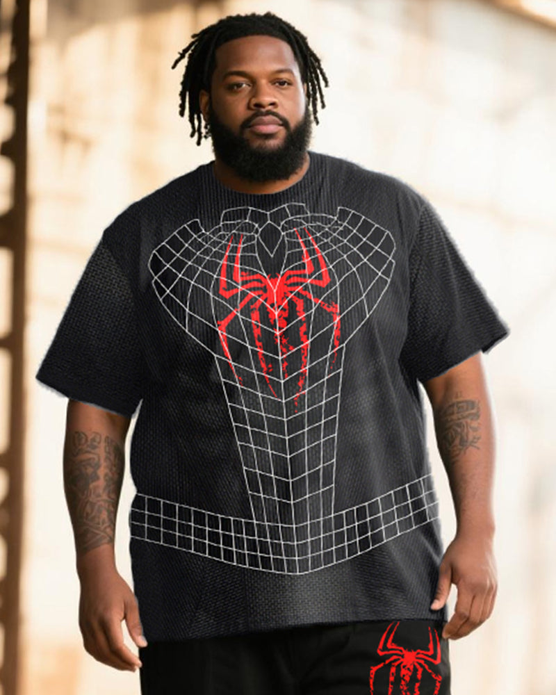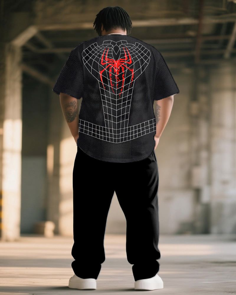 Big & Tall Men's Cosplay Reticulated Chest Spider Print T-Shirt Pants Suit
