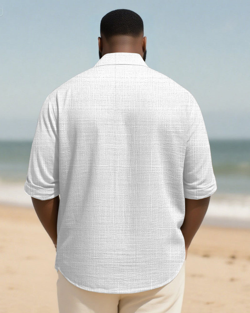 Big & Tall Men's Daily Bamboo Leaf Print Long Sleeve Bamboo Hemp Texture Shirt