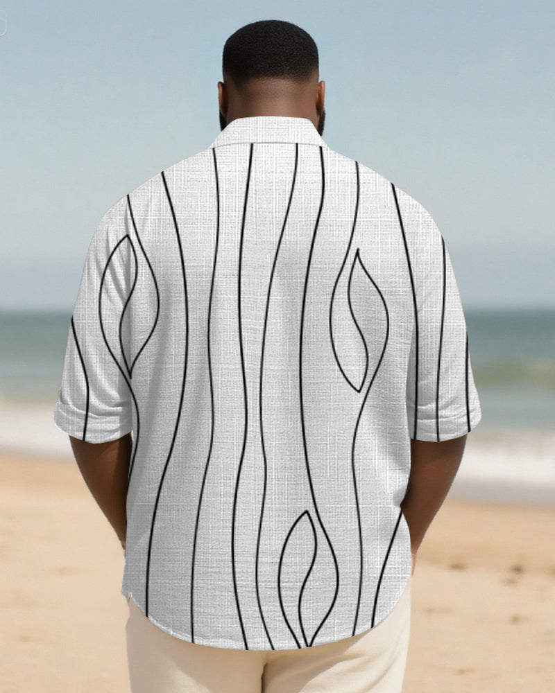 Big & Tall Men's Daily Black And White Irregular Stripe Print Long Sleeve Bamboo Hemp Texture Shirt