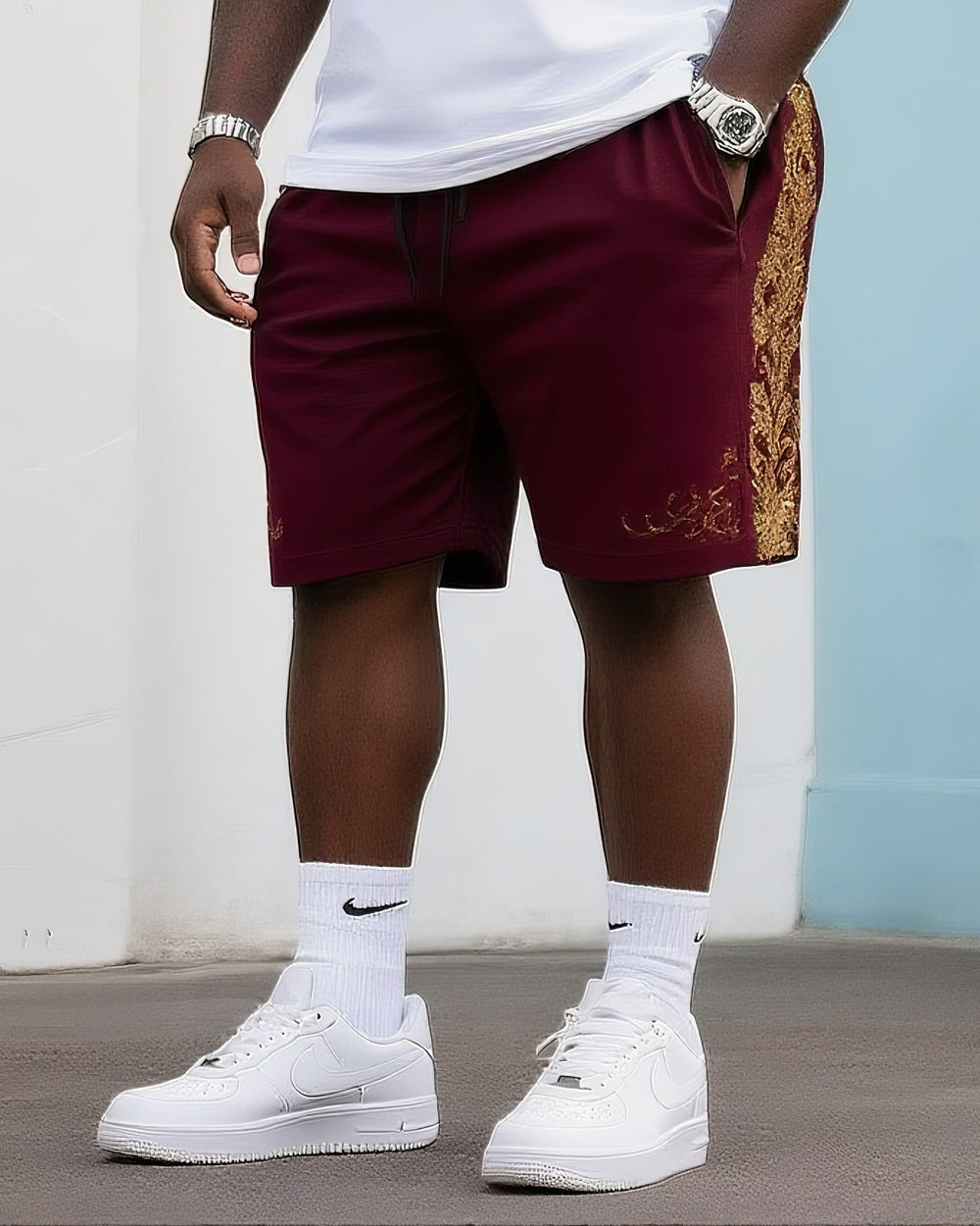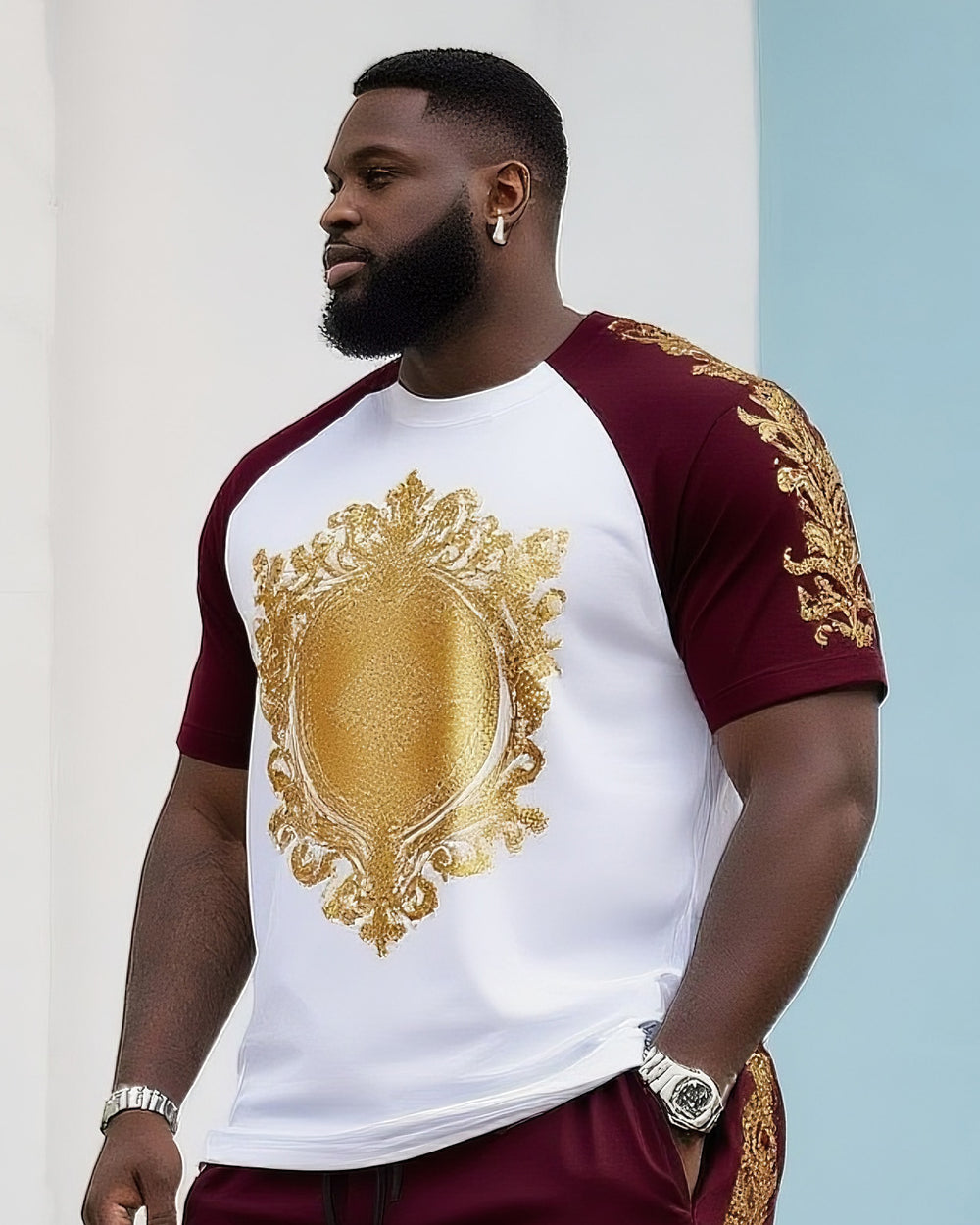 Big & Tall Men's Daily Casual Colorblock Retro Printed Round Neck T-Shirt Shorts Suit