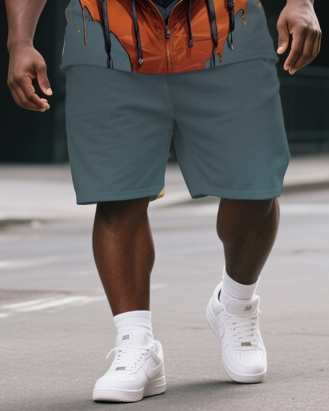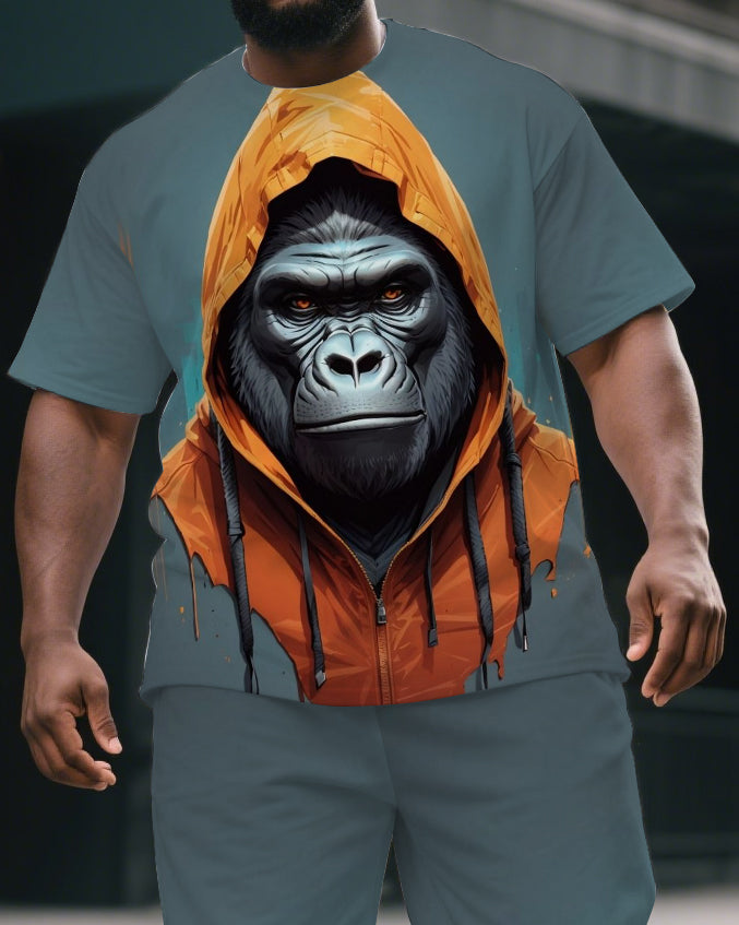 Big & Tall Men's Daily Casual Hoodie Gorillas Street Cartoon Short-Sleeved T-shirt and Short Set