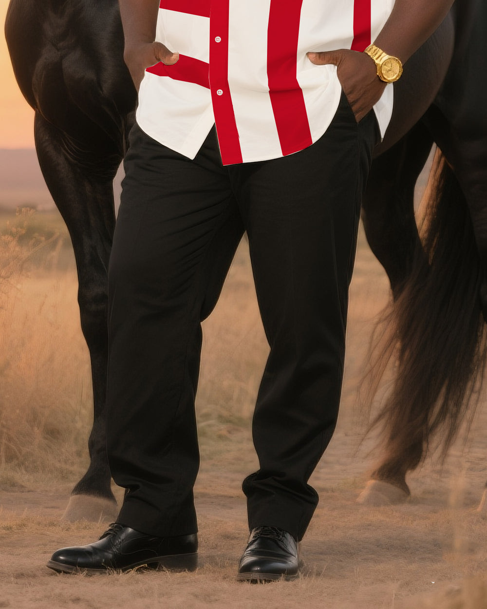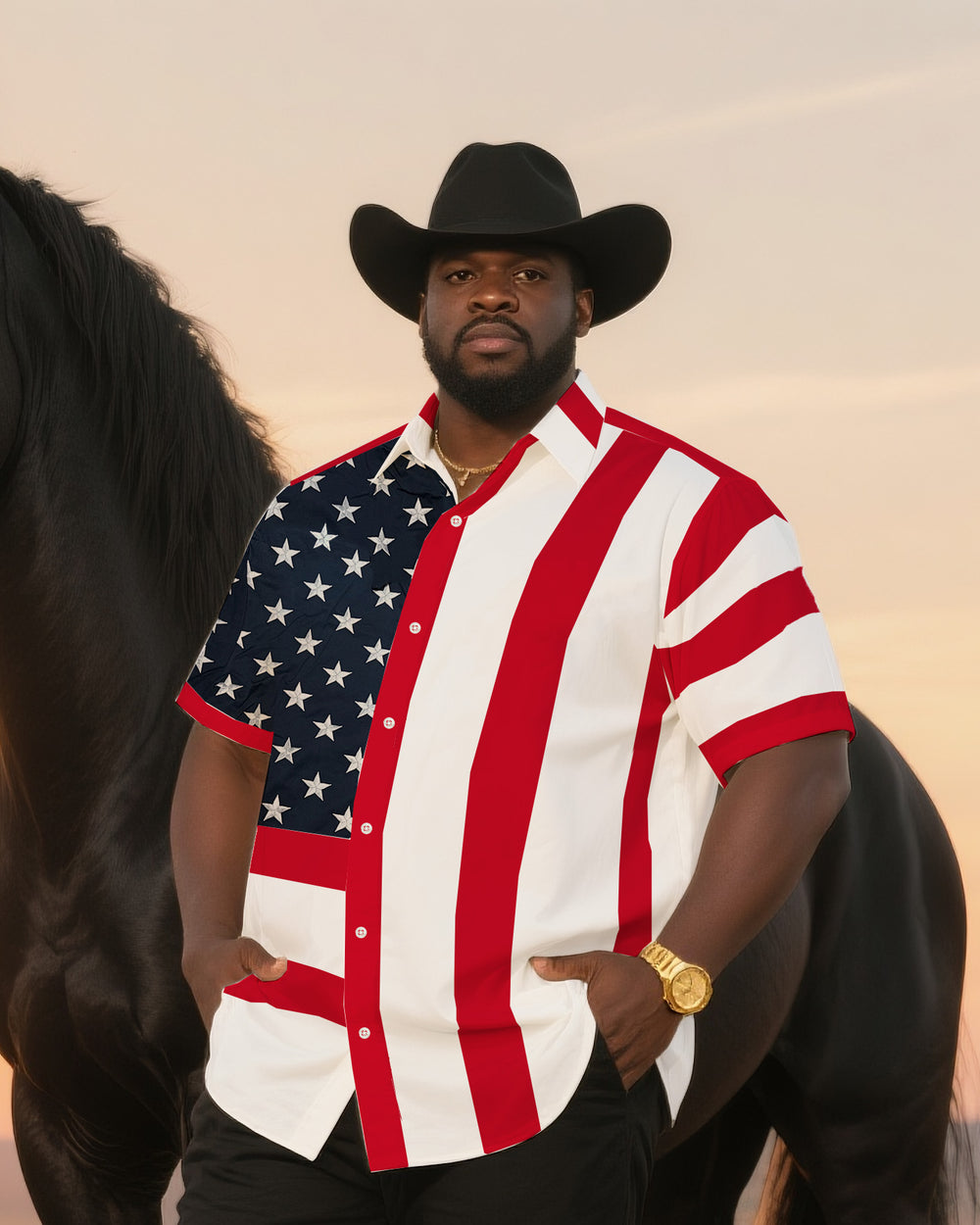 Big & Tall Men's Daily Casual Independence Day Western Style Shirt Flag Design Shirt-Short Sleeve Shirt Trousers Suit