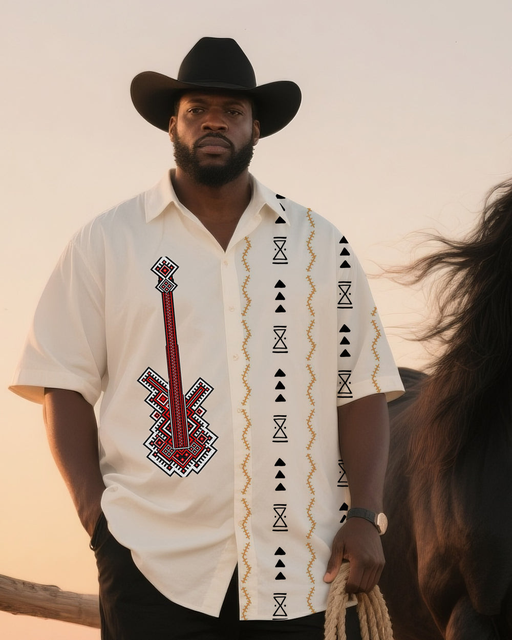 Big & Tall Men's Daily Casual Western Wind Rock Color Matching-short Sleeve Shirt Pants Suit