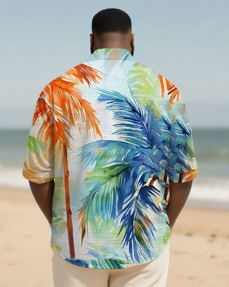 Big & Tall Men's Daily Colorful Coconut Leaf Print Long Sleeve Bamboo Hemp Texture Shirt