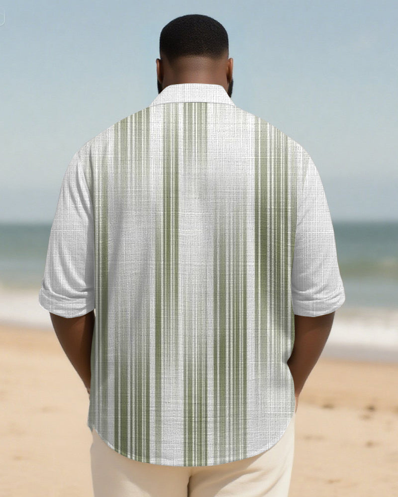 Big & Tall Men's Daily Green Brushed Geometric Print Long Sleeve Bamboo Hemp Texture Shirt