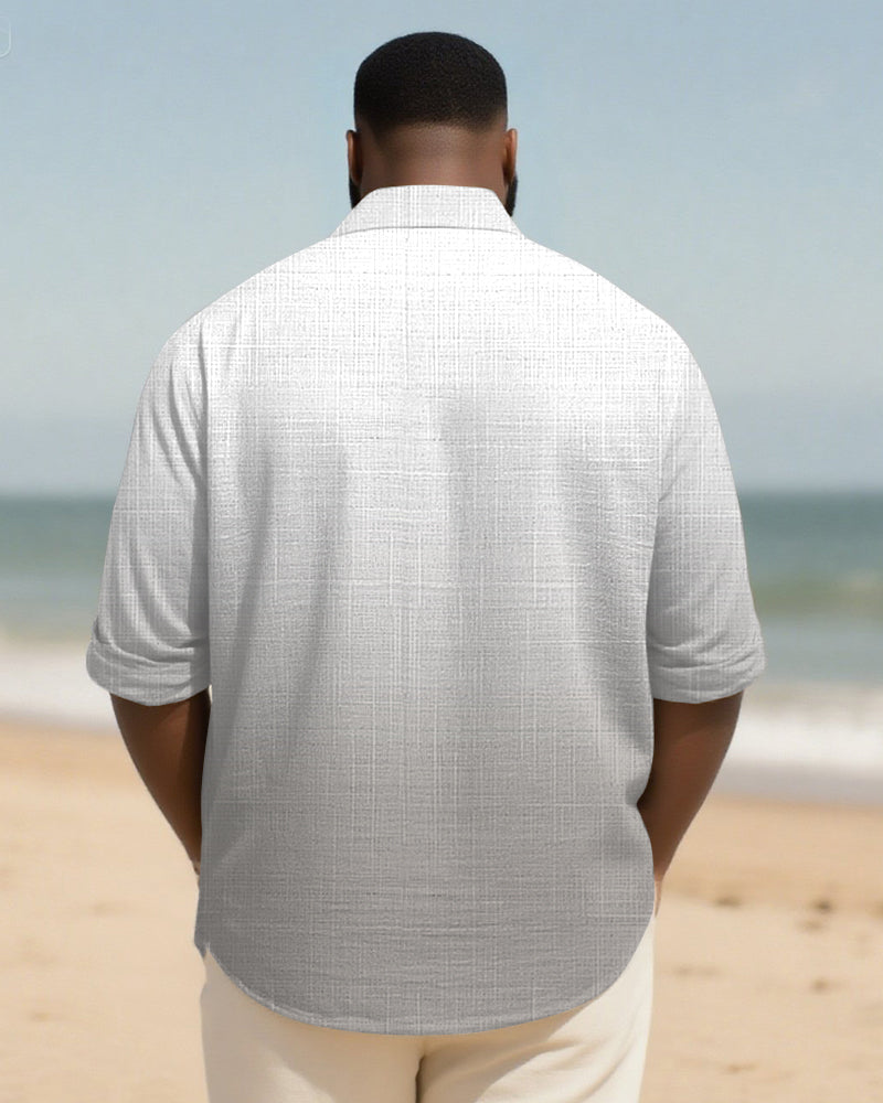 Big & Tall Men's Daily Grey Gradient Leaf Print Long Sleeve Bamboo Hemp Texture Shirt