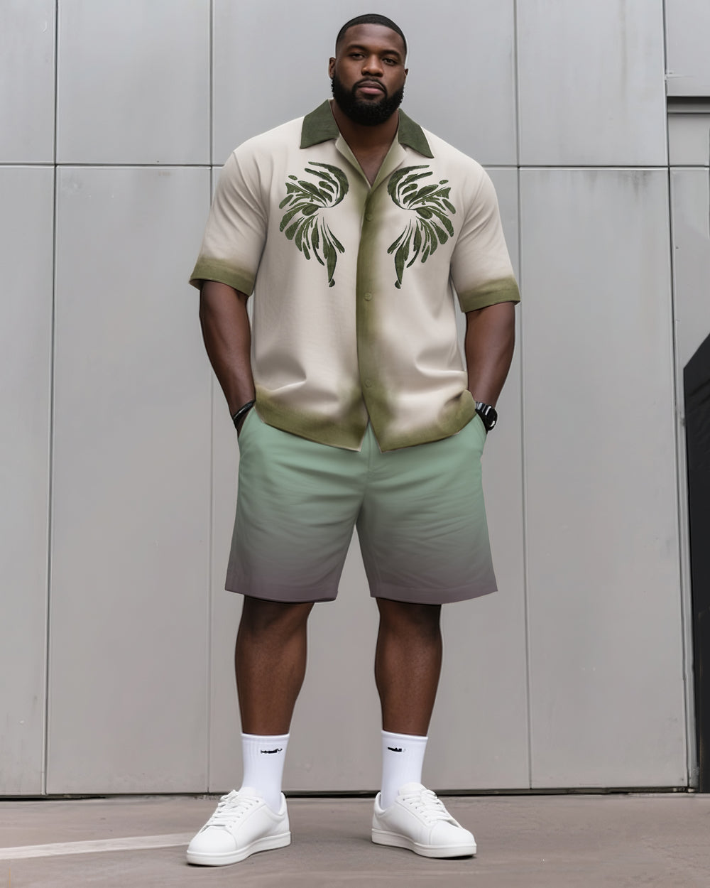 Big & Tall Men's Daily Leisure. Artistic Gradient Creative Print Shirt Shorts Suit