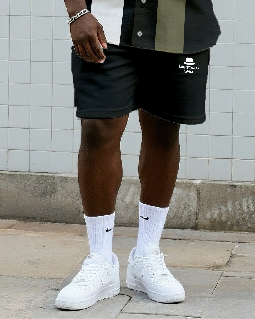 Big & Tall Men's Daily Leisure Big Stripe Touch Color And Micro Label Shirt Shorts Suit