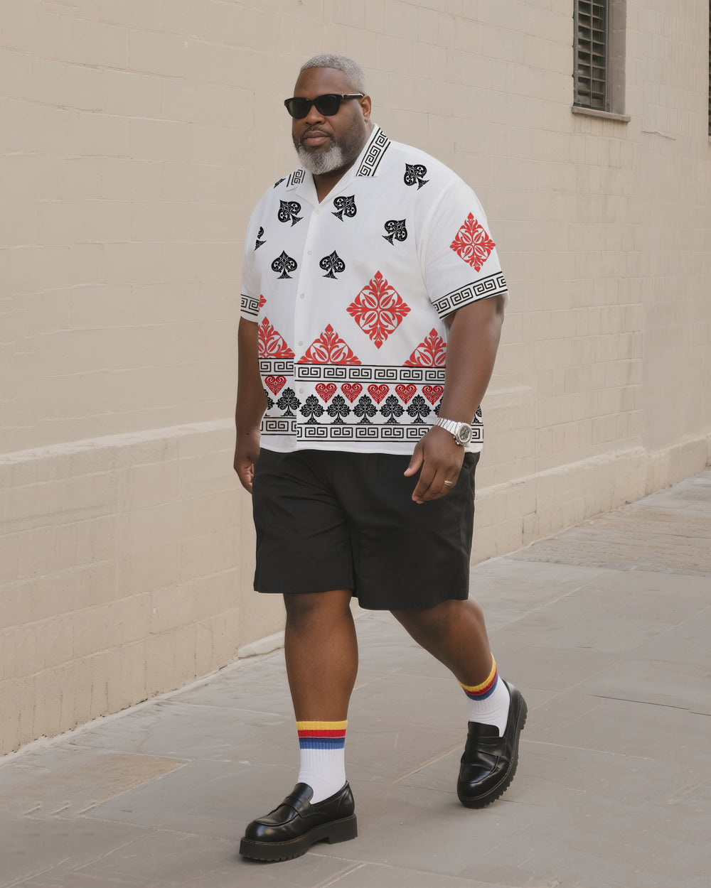 Big & Tall Men's Daily Leisure. Creative Poker Print Shirt Shorts Suit
