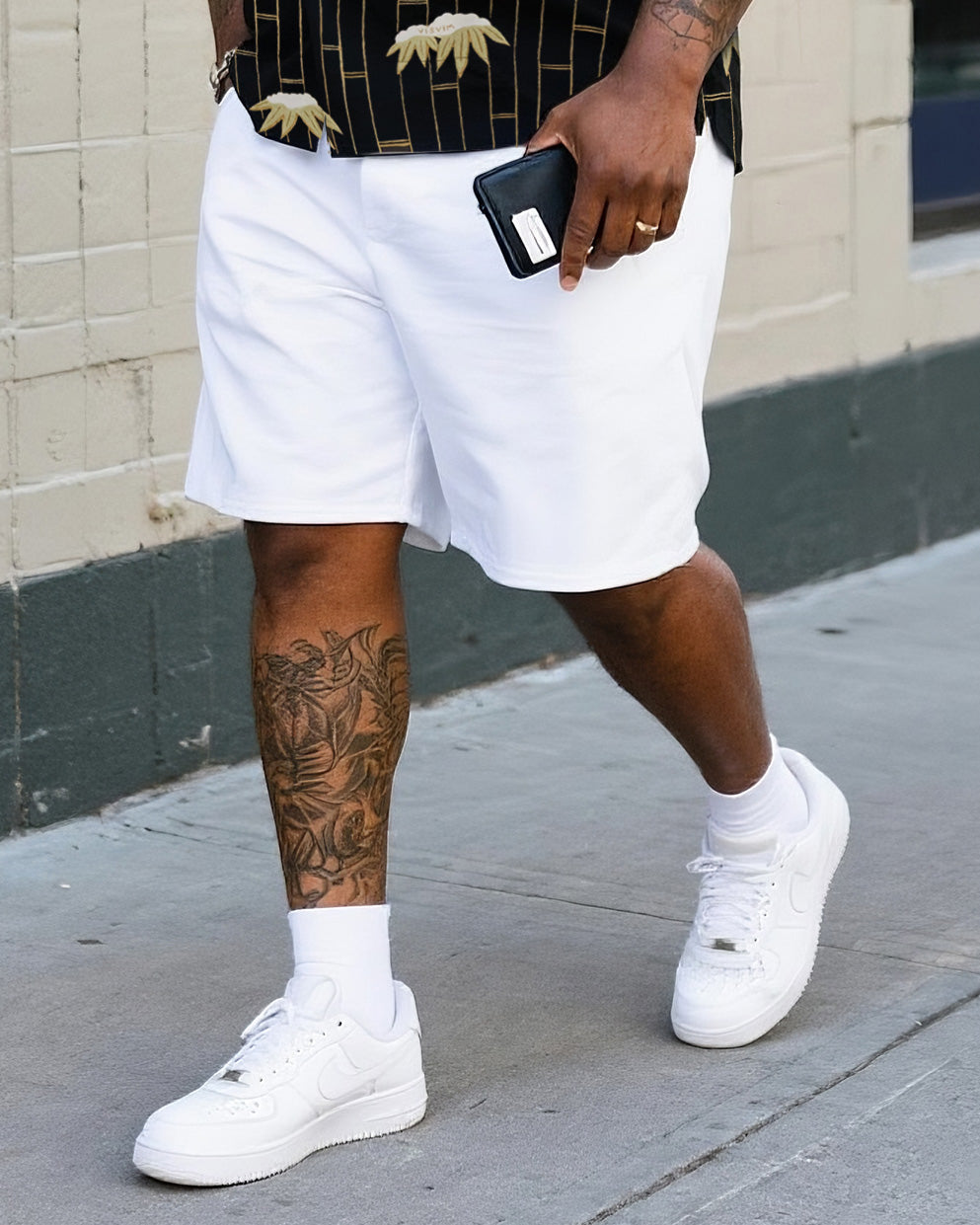 Big & Tall Men's Daily Leisure. High-grade Irregular Bamboo Forest Printed Shirt Shorts Suit