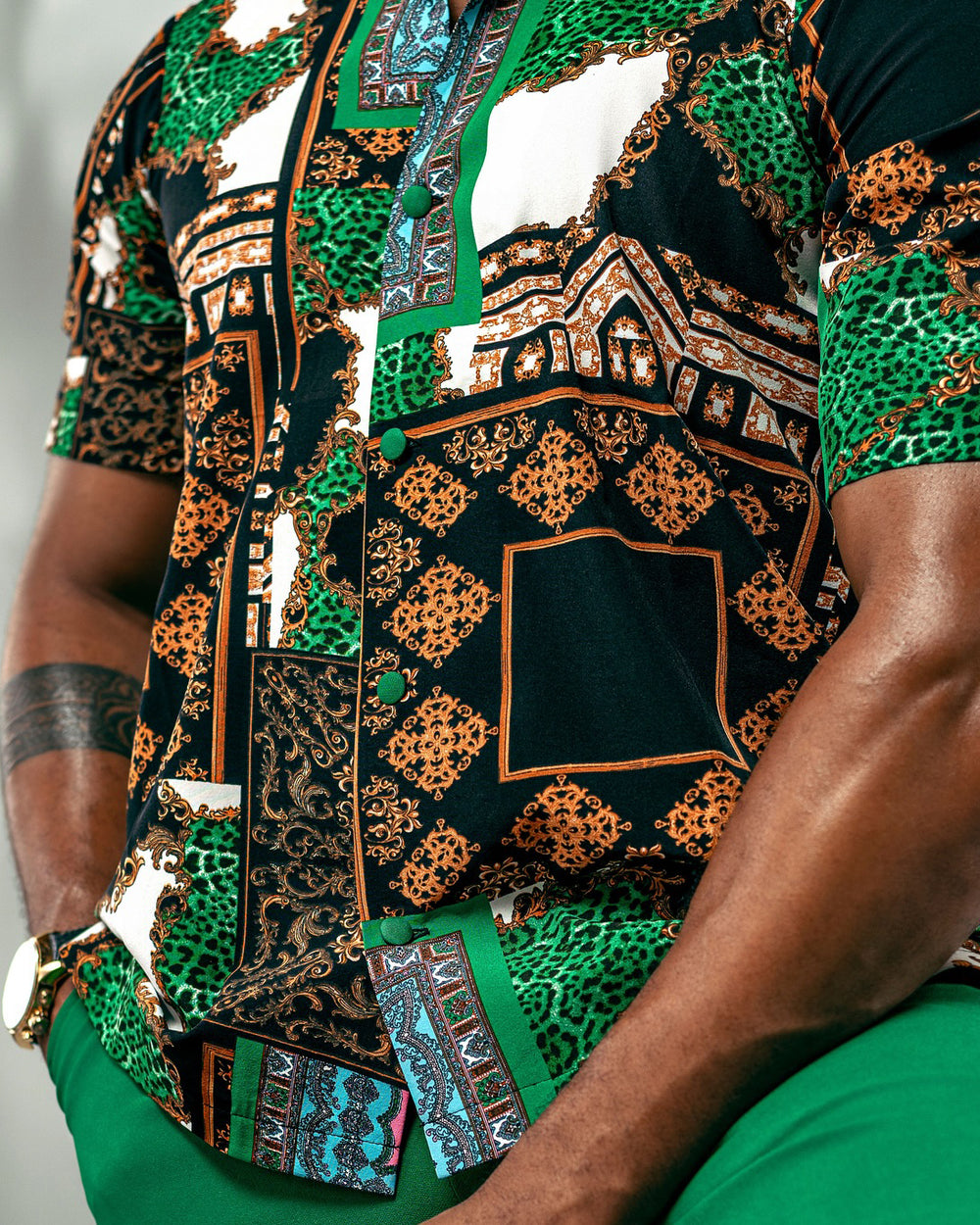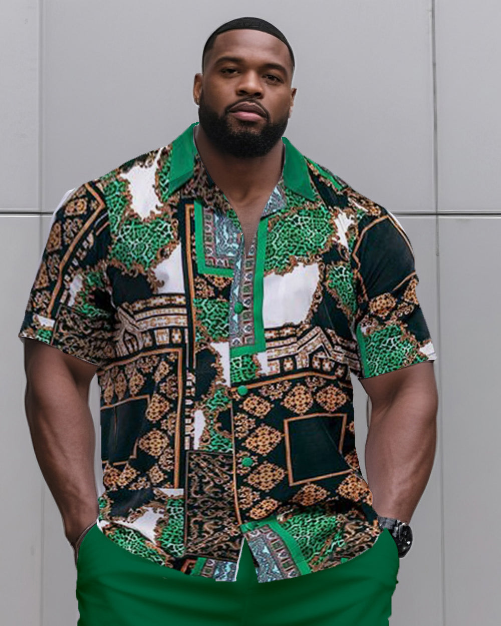 Big & Tall Men's Daily Leisure. High-grade Irregular Print Shirt Shorts Suit