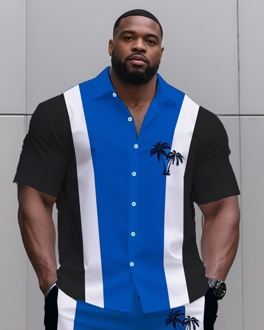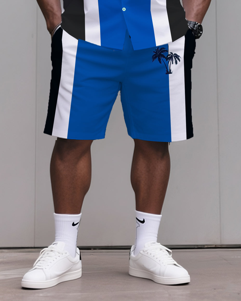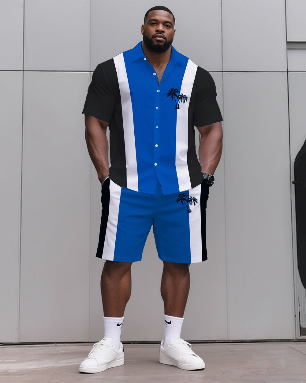 Big & Tall Men's Daily Leisure. Match 3 Color Striped Color. Micro Print Shirt Shorts Suit