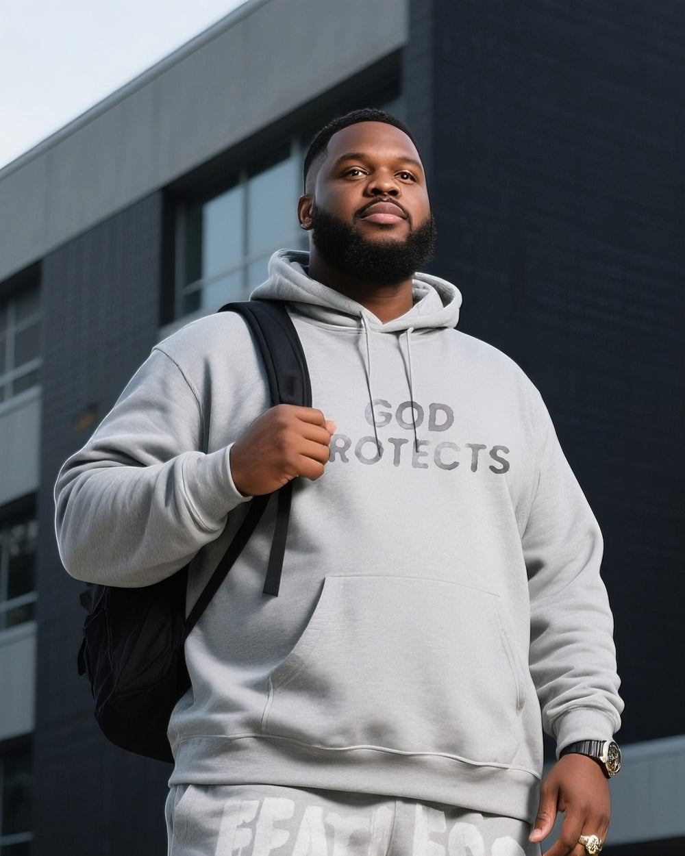 Big & Tall Men's Daily Leisure. Original Design Academy Style GOD ROTECTS. Fearless Hoodie Shorts Suit