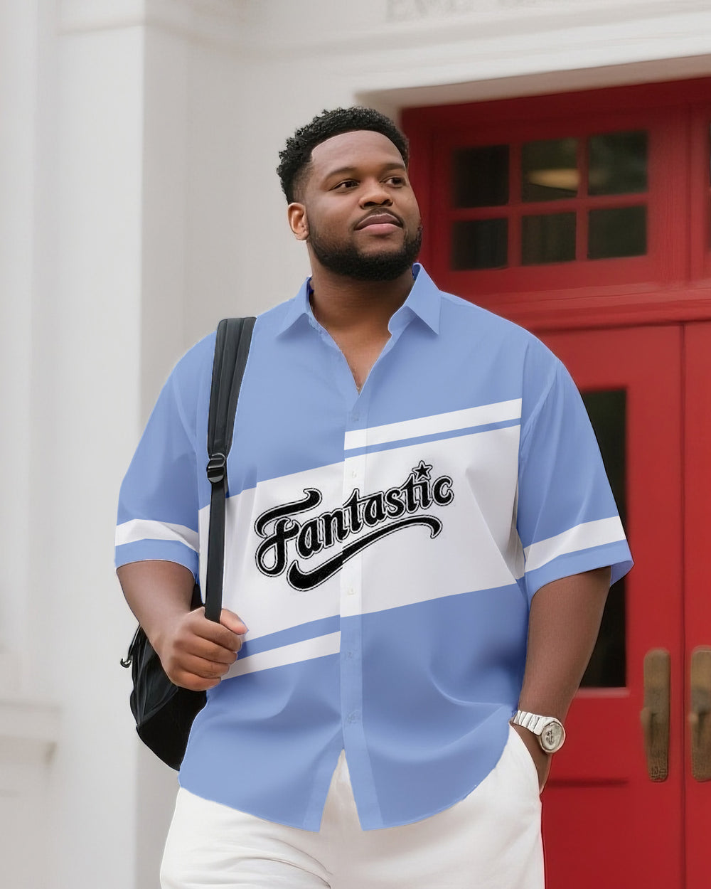 Big & Tall Men's Daily Leisure. Original Design Academy Style Magic Stitching. Printed Short Sleeve Shirt Shorts Suit