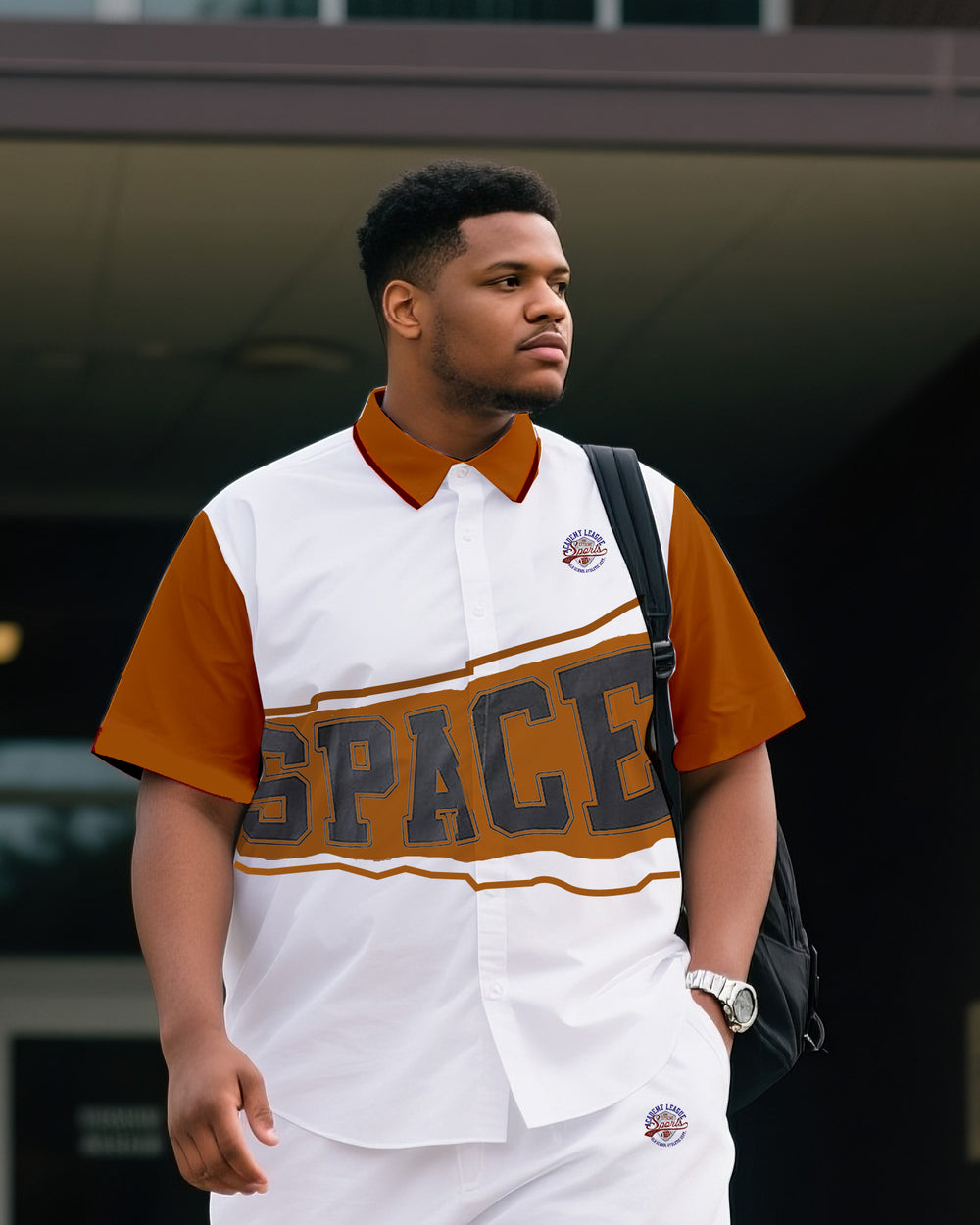 Big & Tall Men's Daily Leisure. Original Design Academy Style Stitching Collision Color-space. Printed Short Sleeve Shirt Shorts Suit