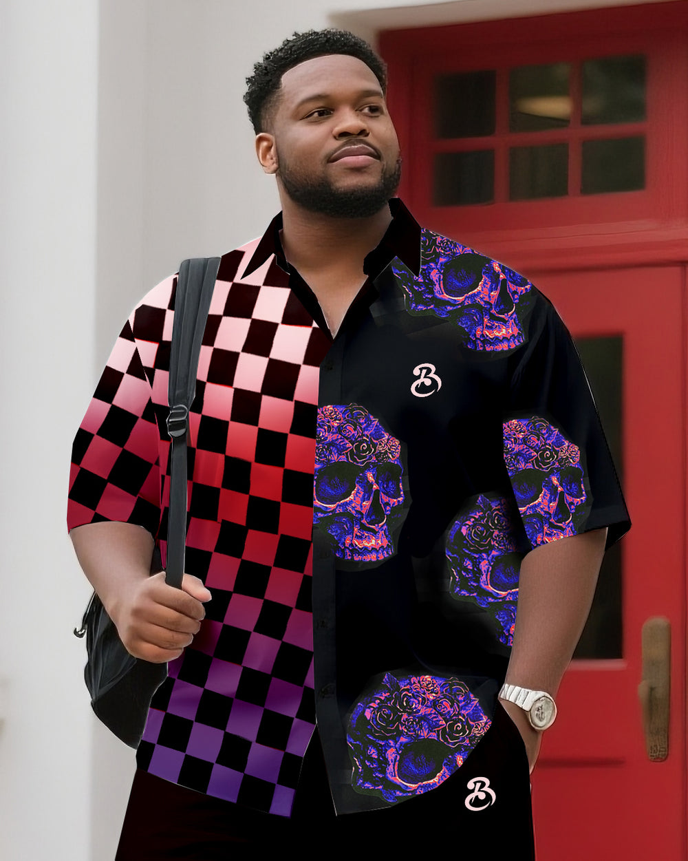 Big & Tall Men's Daily Leisure. Original Design Collision Color Stitching. Printed Short Sleeve Shirt Shorts Suit