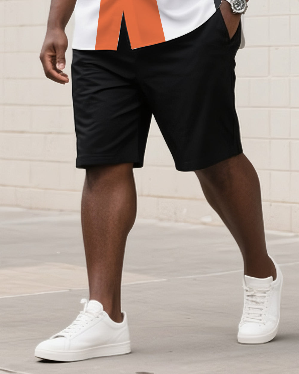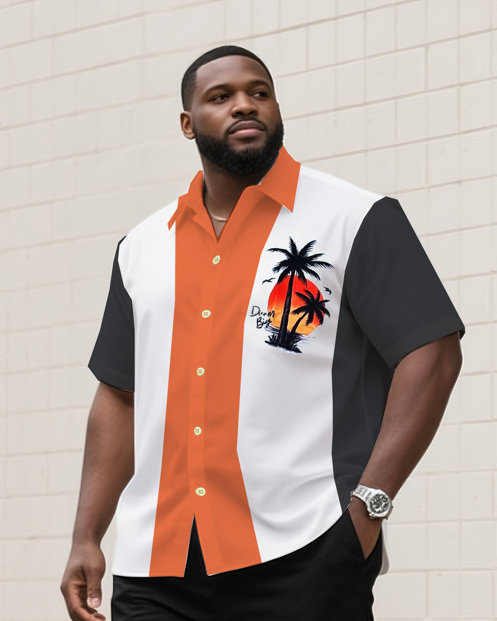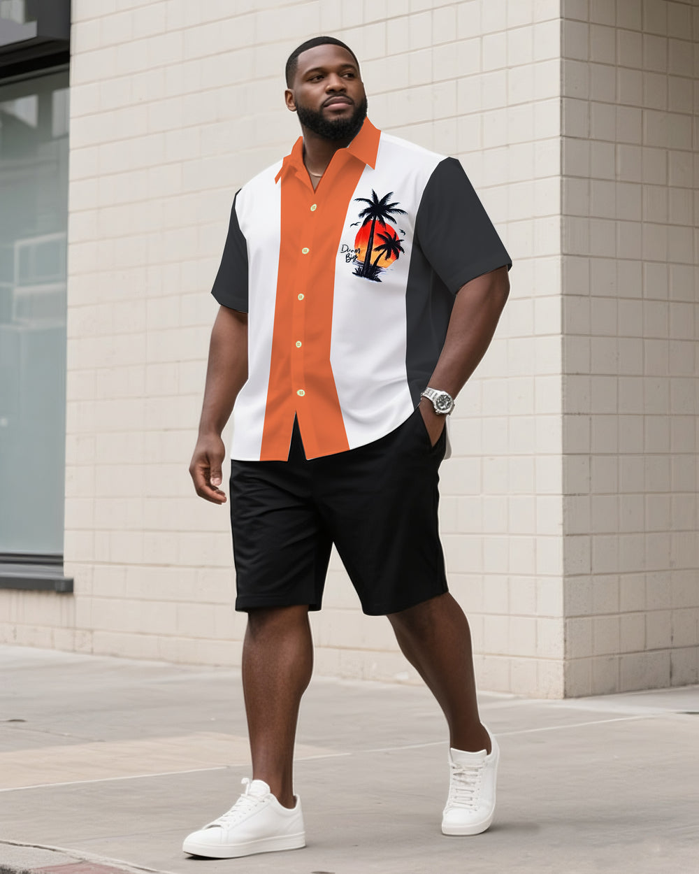 Big & Tall Men's Daily Leisure. Summer Joker 3 Color Stripe Color. Coconut Tree Micro Print Shirt Shorts Suit