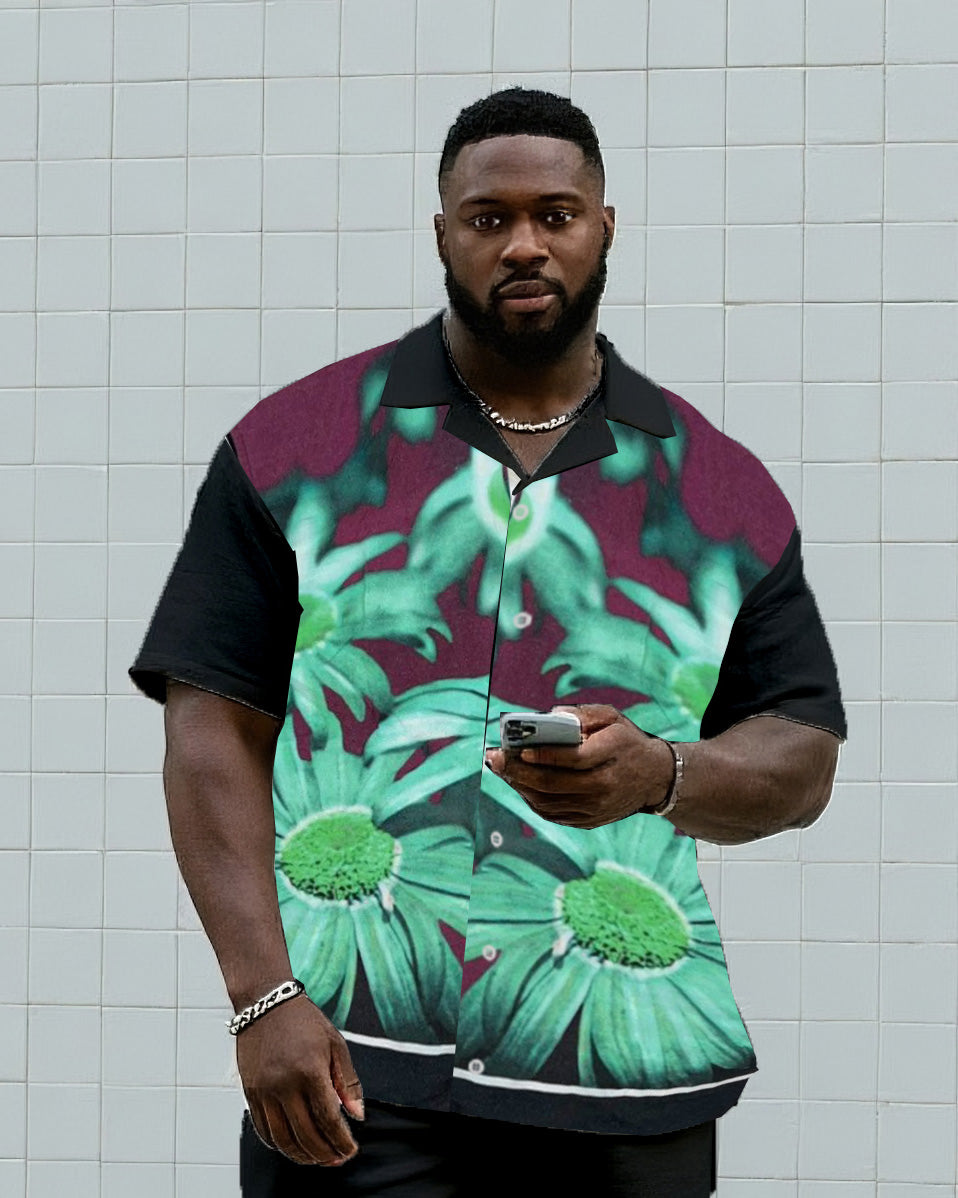 Big & Tall Men's Daily Leisure. Vintage Floral Gradient Shirt Shorts Suit