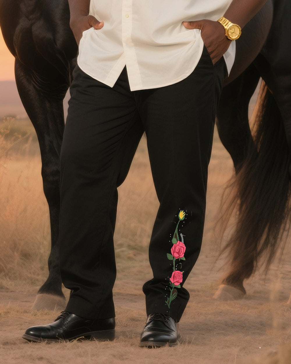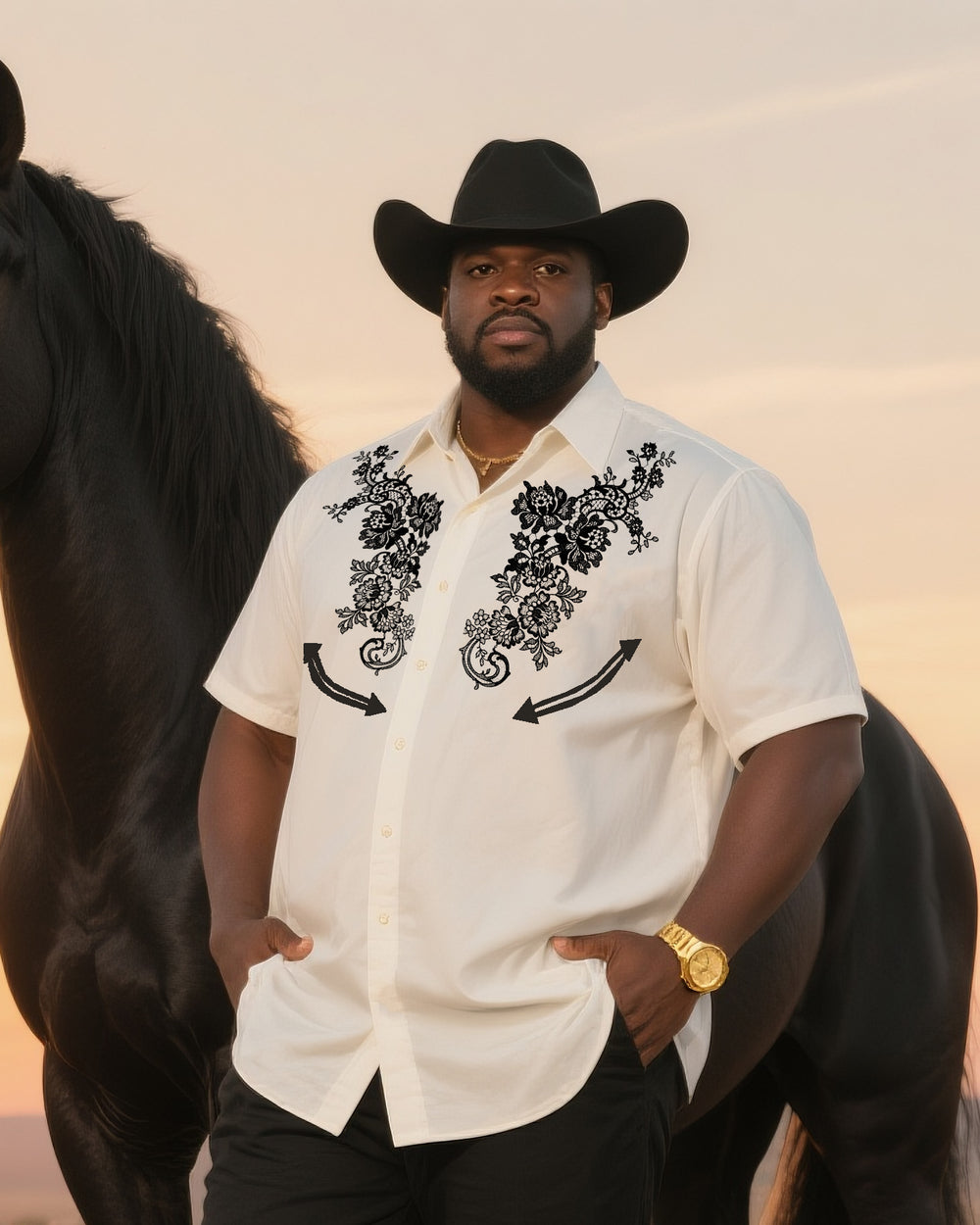 Big & Tall Men's Daily Leisure Western Style Flowers-Short Sleeve Shirt Pants Suit