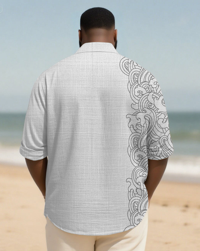 Big & Tall Men's Daily Wave Print Long Sleeve Bamboo Hemp Texture Shirt