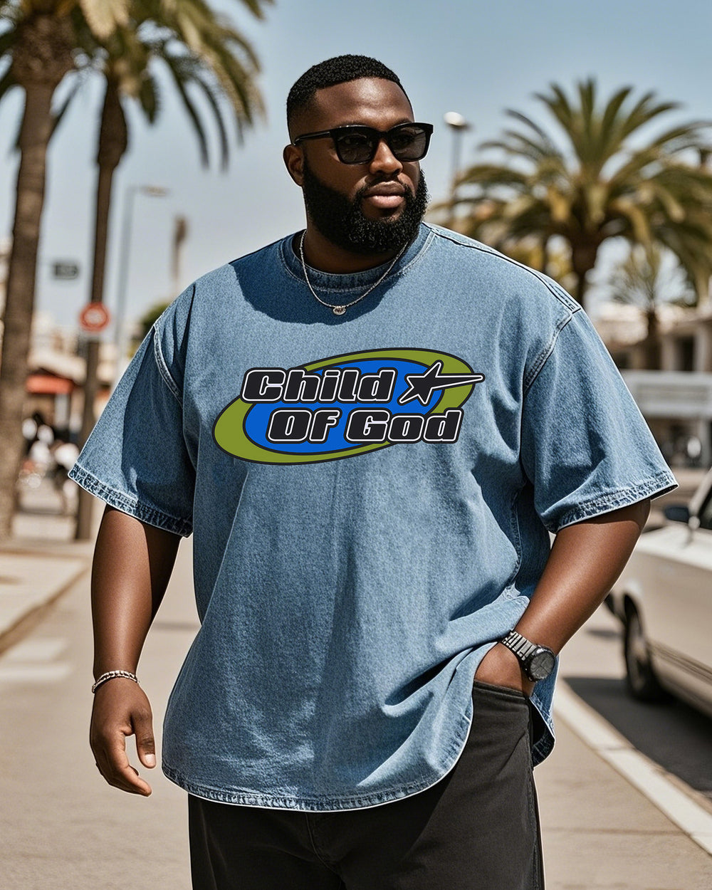 Big & Tall Men's Easy All-Match Child OF God Denim T-Shirt