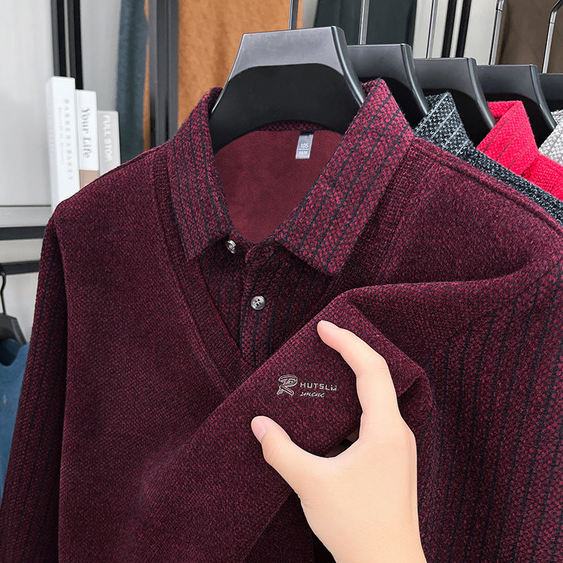 Big & Tall Men's Fake Two-piece Lapel Padded Sweater M-4XL