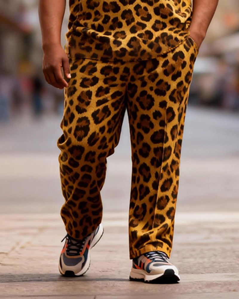 Big & Tall Men's Full Leopard Print Claw Mark Printed T-Shirt Pants Set