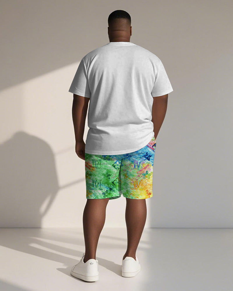 Big & Tall Men's Gradient Geometric Curved Duckling Print Crewneck Short-sleeved T-shirt Shorts Suit