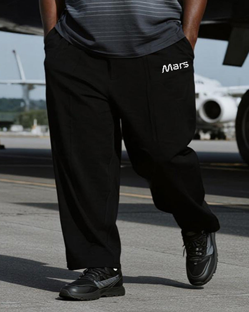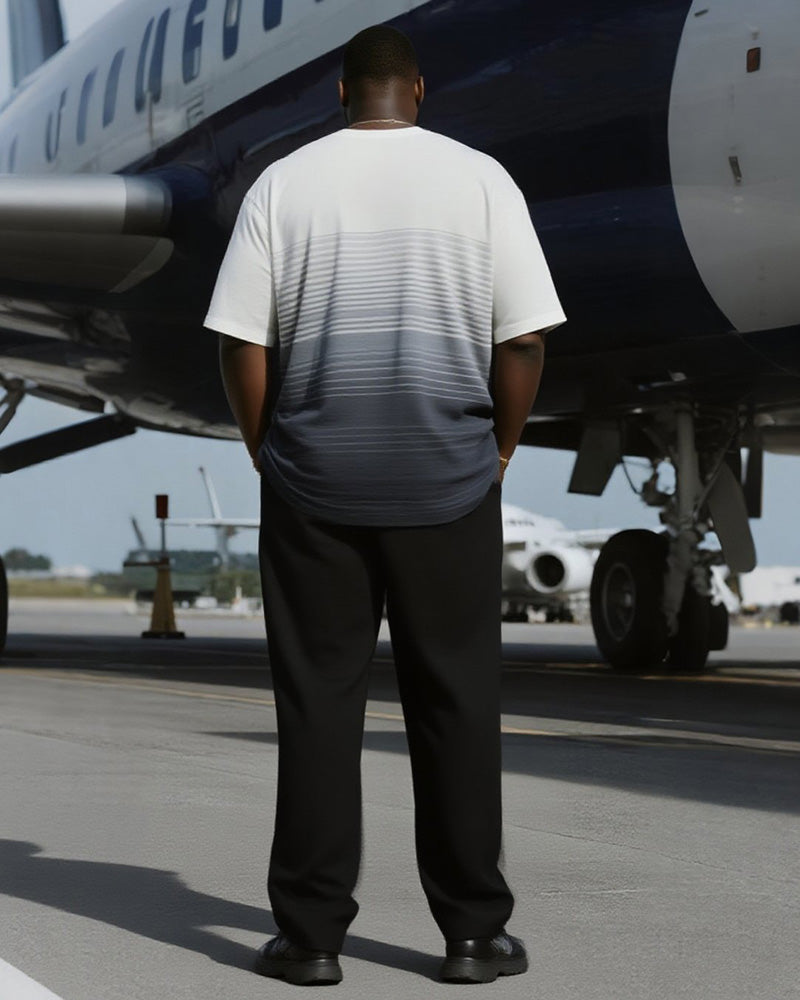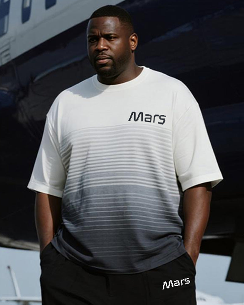 Big & Tall Men's Gradient Light Gray Stripe Mars Alphabet Print T-Shirt Trousers Suit