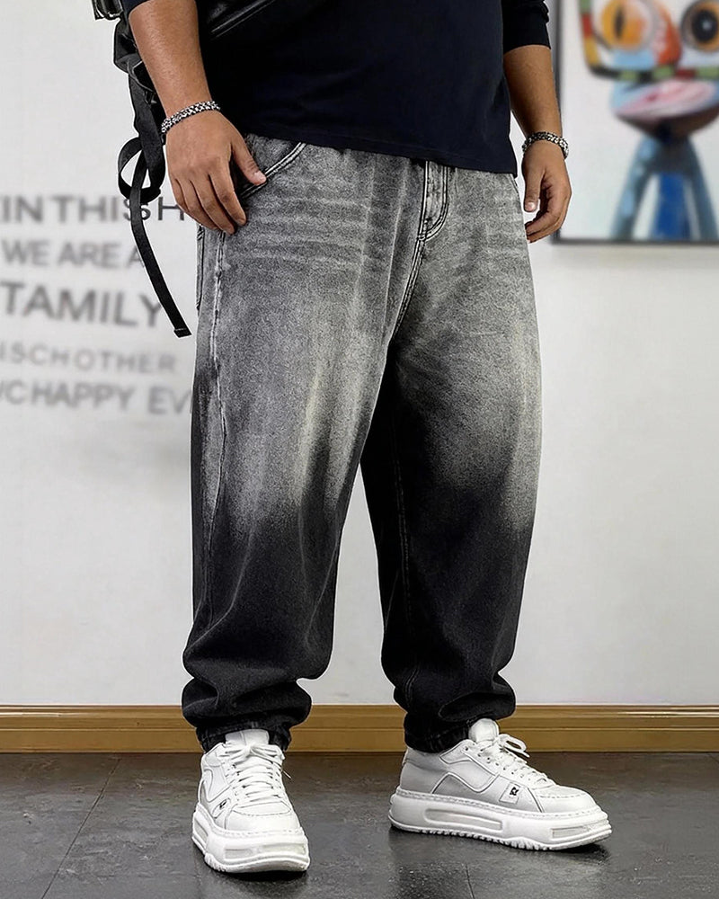 Big & Tall Men's Gradient Washed Jeans Loose Pants M-8XL