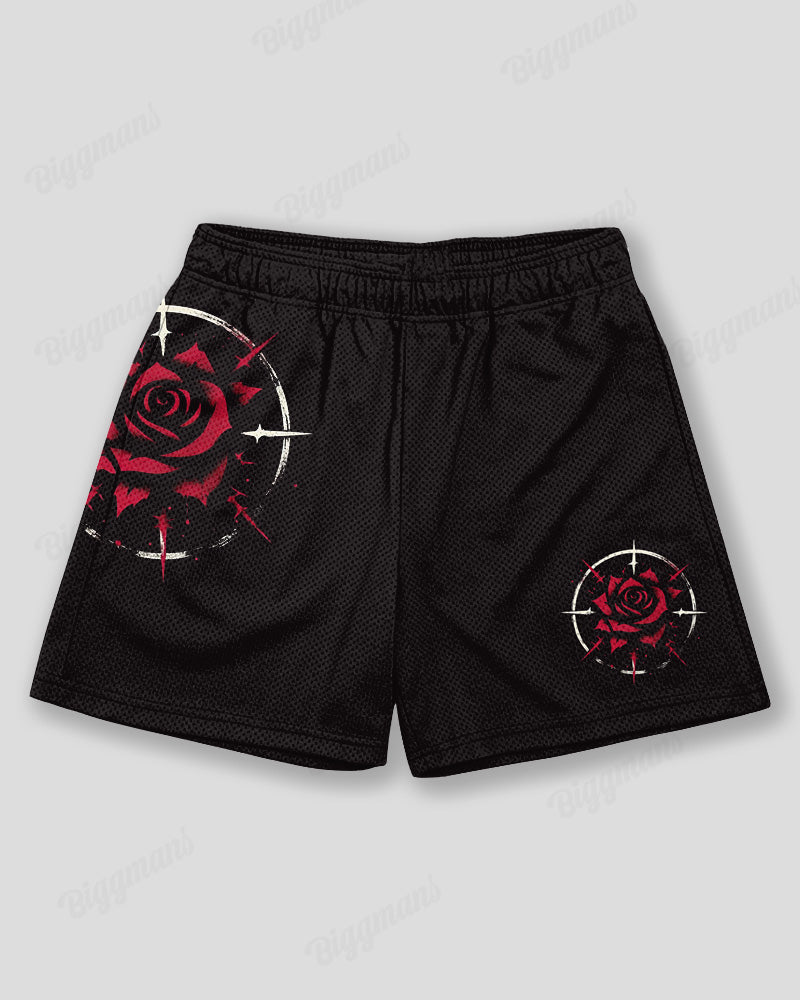 Big & Tall Men's Graffiti Rose Gothic Print Sports Mesh Quick-Dry Shorts