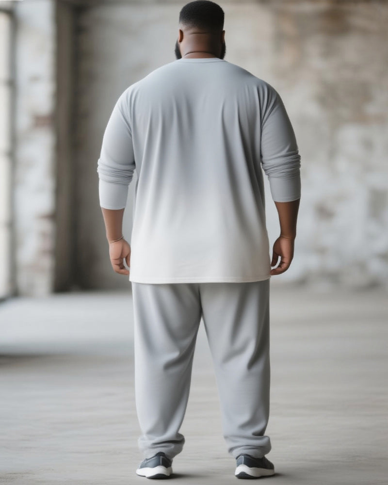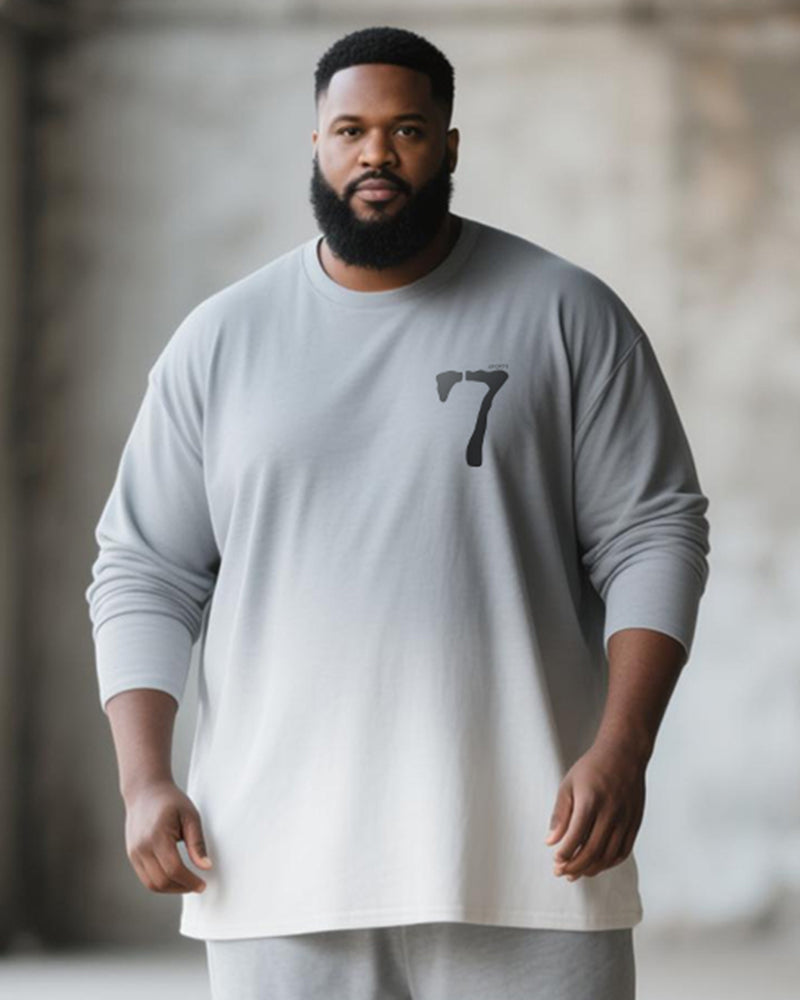 Big & Tall Men's Gray Gradient Number 7 Printed Long Sleeve T-Shirt Pants Suit