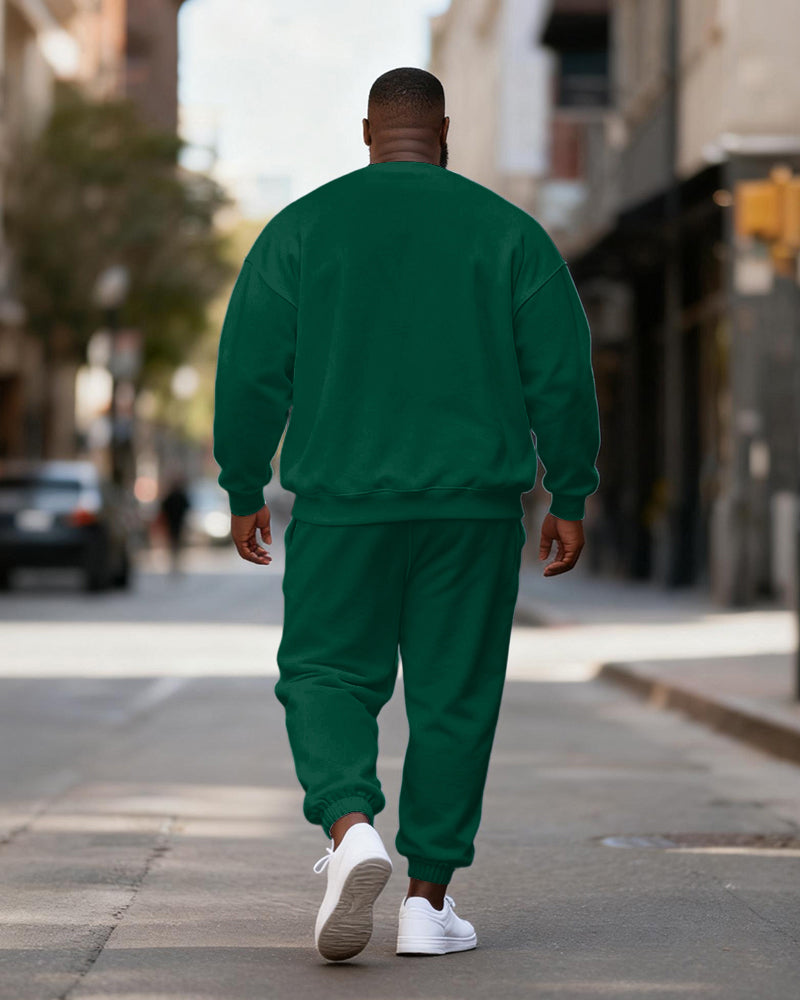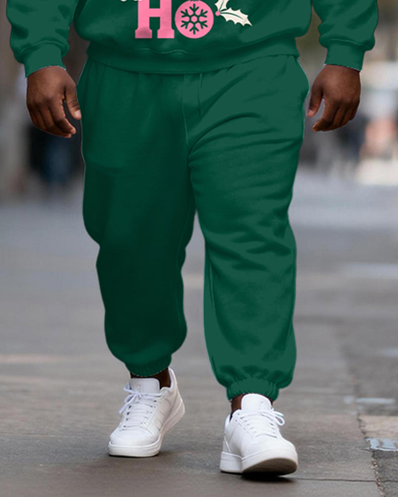 Big & Tall Men's Green "HO HO HO" Christmas Hat Printed Crewneck Sweat Set
