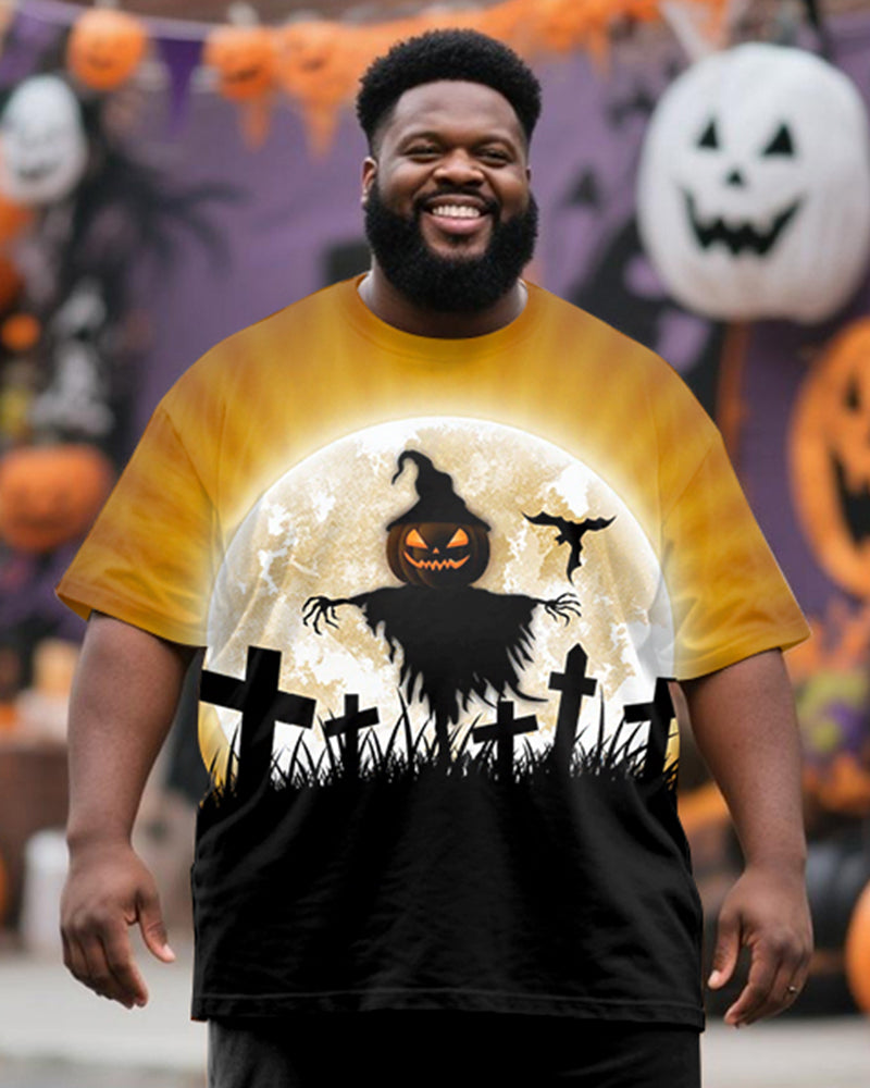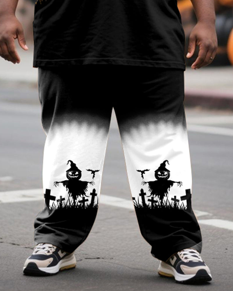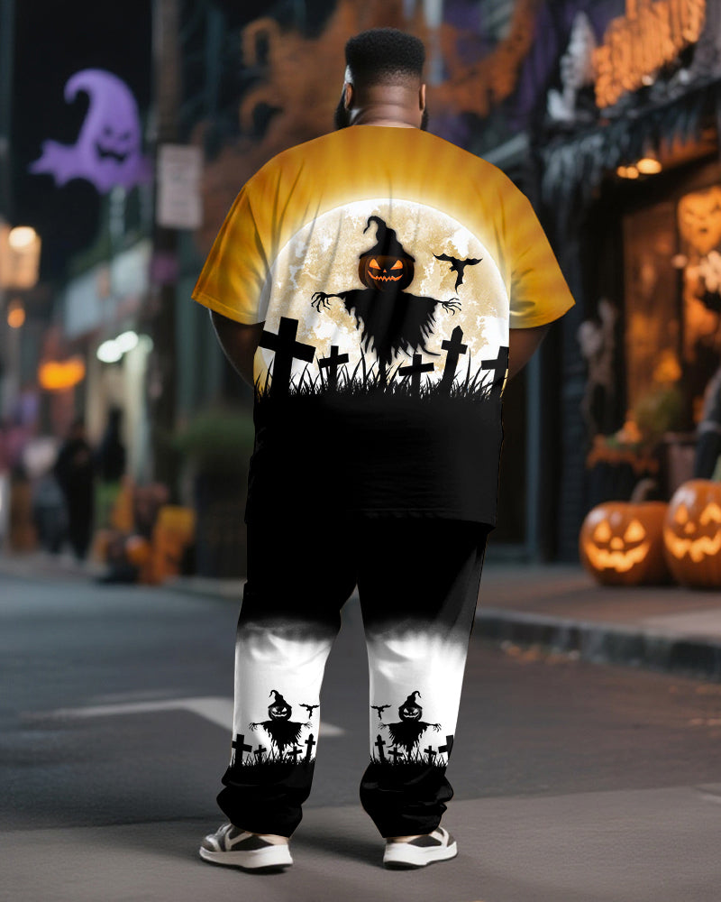 Big & Tall Men's Halloween Cool Scarecrow Gradient Print T-Shirt Trousers Suit